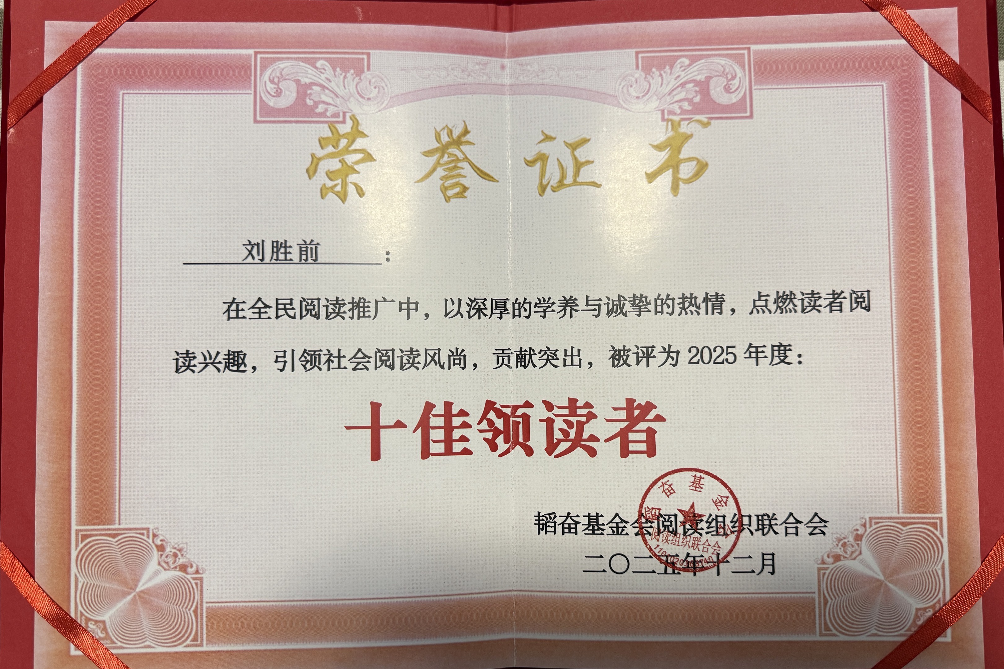 12月10日,韬奋基金会阅读组织联合会第十一届年会暨巫山乡村阅读季活动在重庆巫山圆满落幕。本次活动以“未来已来,阅见世界”为主题,汇聚全国阅读推广领域的精英力量,共话全民阅读发展新路径。会上,聊城小水滴读书会创始人刘胜前凭借在全民阅读推广领域的突出贡献,获评“2025年度十佳领读者” 称号,这一荣誉不仅是对其个人深耕阅读推广事业的肯定,更是对小水滴读书会多年来坚守公益初心、深耕书香聊城建设的高度认可。