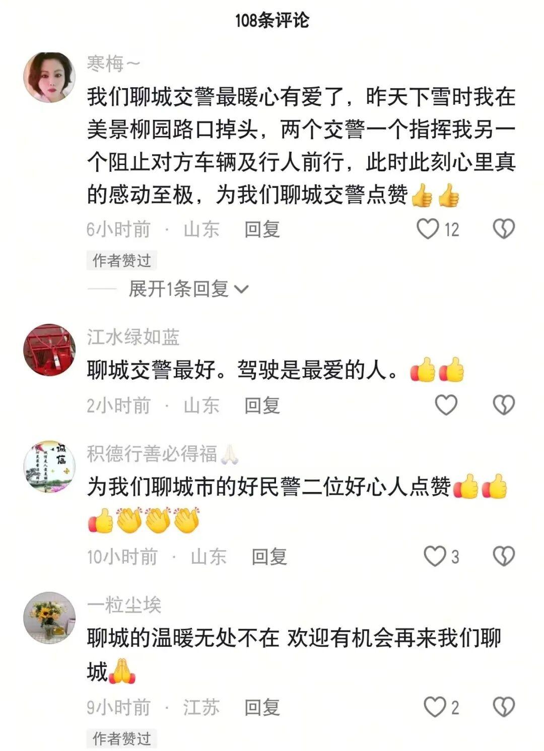 发生在聊城雪夜里的温暖,外地游客发视频点赞执勤交警