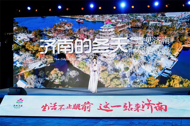 推介会以“济南的冬天”为核心,通过兼具古韵与新潮的多元呈现形式,将泉城的冬日魅力徐徐铺展成卷。推介会开场歌曲《这一站,济南》旋律轻快,瞬间点燃现场氛围;广州《舞狮》、珠海《咏春》表演展现岭南文化韵味,与济南文旅的厚重底蕴形成巧妙呼应。