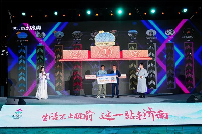济南各区县文旅推荐官的花式推介,现场“圈粉”无数。历下区推荐官扮演“夏雨荷”,结合《还珠格格》经典IP推介大明湖、趵突泉;章丘区推荐官化身李清照,以《如梦令》引出百脉泉、明水古城的婉约风光;商河县推荐官以“温泉仙子”形象,介绍地下1380米、58-62℃的养生温泉;市中区、槐荫区、天桥区推荐官打快板登场,讲述老商埠的历史与电竞产业园的新潮活力;济阳区、钢城区、平阴县推荐官改编《最炫民族风》,将垛石番茄、曲堤黄瓜、平阴玫瑰等特产融入歌词;高新区、起步区推荐官以相声互动,科普高科技产业园区、穿黄隧道等“新济南”地标;历城区、莱芜区、长清区、南部山区的推荐官则以诗朗诵,描绘华山、雪野湖、齐长城的山水之美与红色文化。期间多轮抽奖与福利派送,更是加深了两地市民对济南文旅特色的印象,让现场氛围持续升温。
