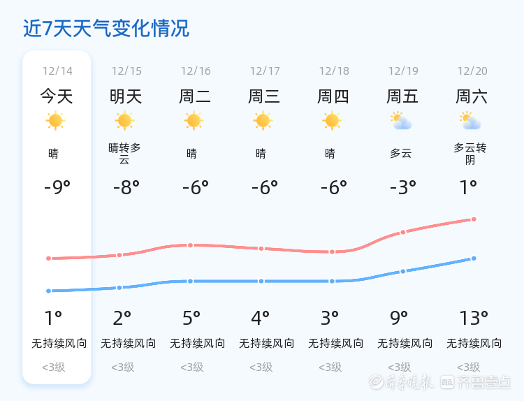 未来三天,淄博市的天气以晴为主,气温逐渐回升,预计最高气温将达到5℃,最低气温在-6℃左右。虽然天气晴朗,但早晚温差较大,市民出行时仍需注意保暖,特别是早晨和傍晚时段。