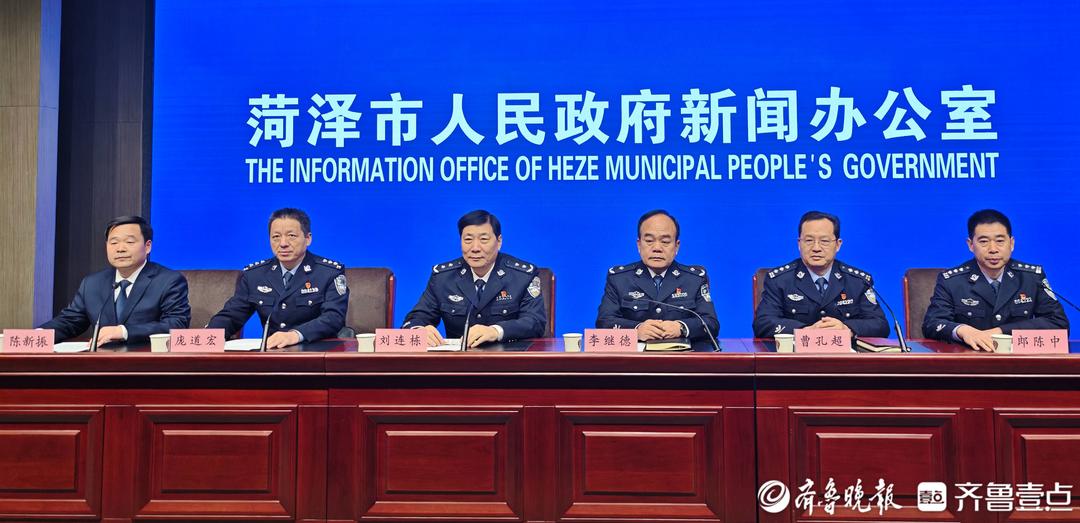 12月12日,菏泽市政府新闻办召开菏泽市“决胜‘十四五’ 续写新篇章”系列主题新闻发布会(公安工作专场),菏泽市副市长、市政府党组成员,市公安局党委书记、局长刘连栋;市公安局党委委员、交通管理支队支队长李继德;市公安局治安管理支队支队长庞道宏;市公安局经侦支队支队长曹孔超;市公安局刑侦支队副支队长郎陈中共同介绍“十四五”时期菏泽公安机关以高水平安全护航高质量发展的有关情况,并回答记者关心的问题。