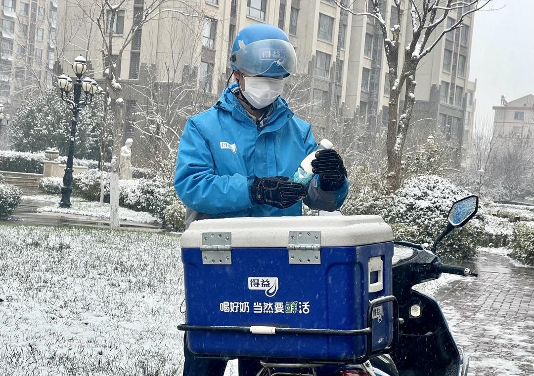 风雪无阻 鲜活必达 得益乳业投递员穿越风雪的温暖守护
