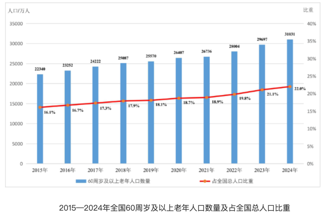 随着我国人口老龄化程度的加深,养老已成为社会关注的热点话题。民政部、全国老龄办今年7月发布的《2024年度国家老龄事业发展公报》显示,截至2024年末,全国60周岁及以上老年人口31031万人,占总人口的22.0%;全国65周岁及以上老年人口22023万人,占总人口的15.6%。全国65周岁及以上老年人口抚养比22.8%。全国人均预期寿命达79.0岁。如何推进从“养老”到“享老”的转变进程,是我国面临的重大社会问题。
