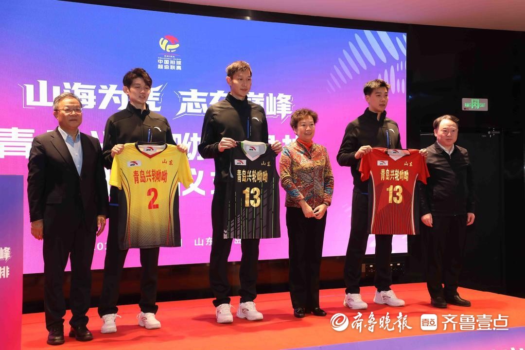 冠名赞助商兴轮集团有限公司副总裁李倩在致辞中表示,企业将全力护航球队征战赛场,以实际行动助力青岛体育事业发展。随后,新赛季战袍惊艳亮相,运动员代表王径一、翟德军、范宣玉携手栾新、薄涛、青岛市体育局党组书记、局长蔡全记共同展示全新队服。球衣巧妙融合青岛山海元素与球队标识,将城市底蕴与球队使命镌刻其中。