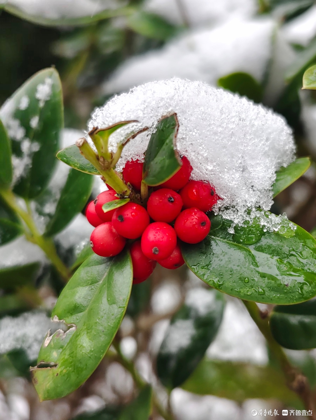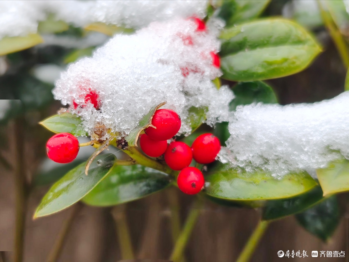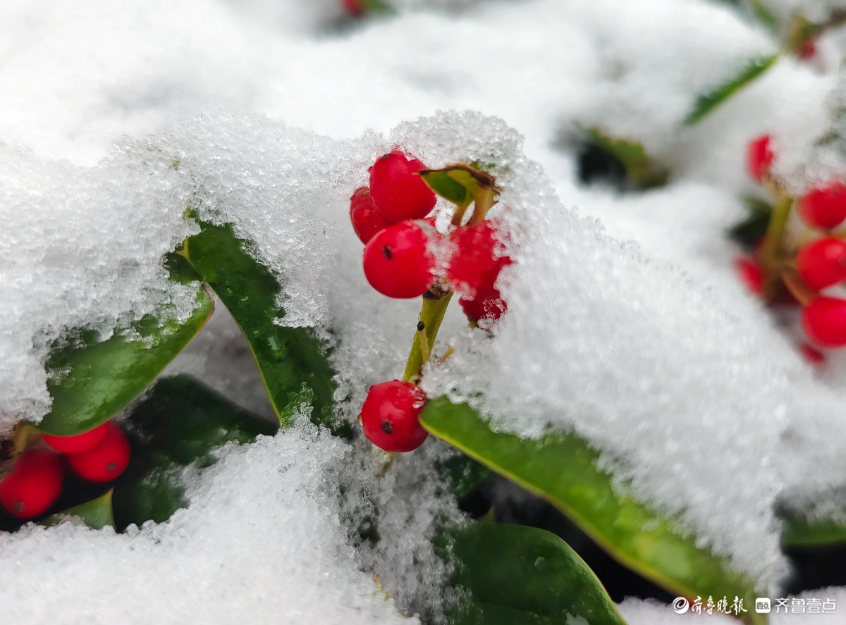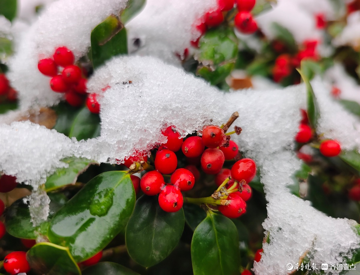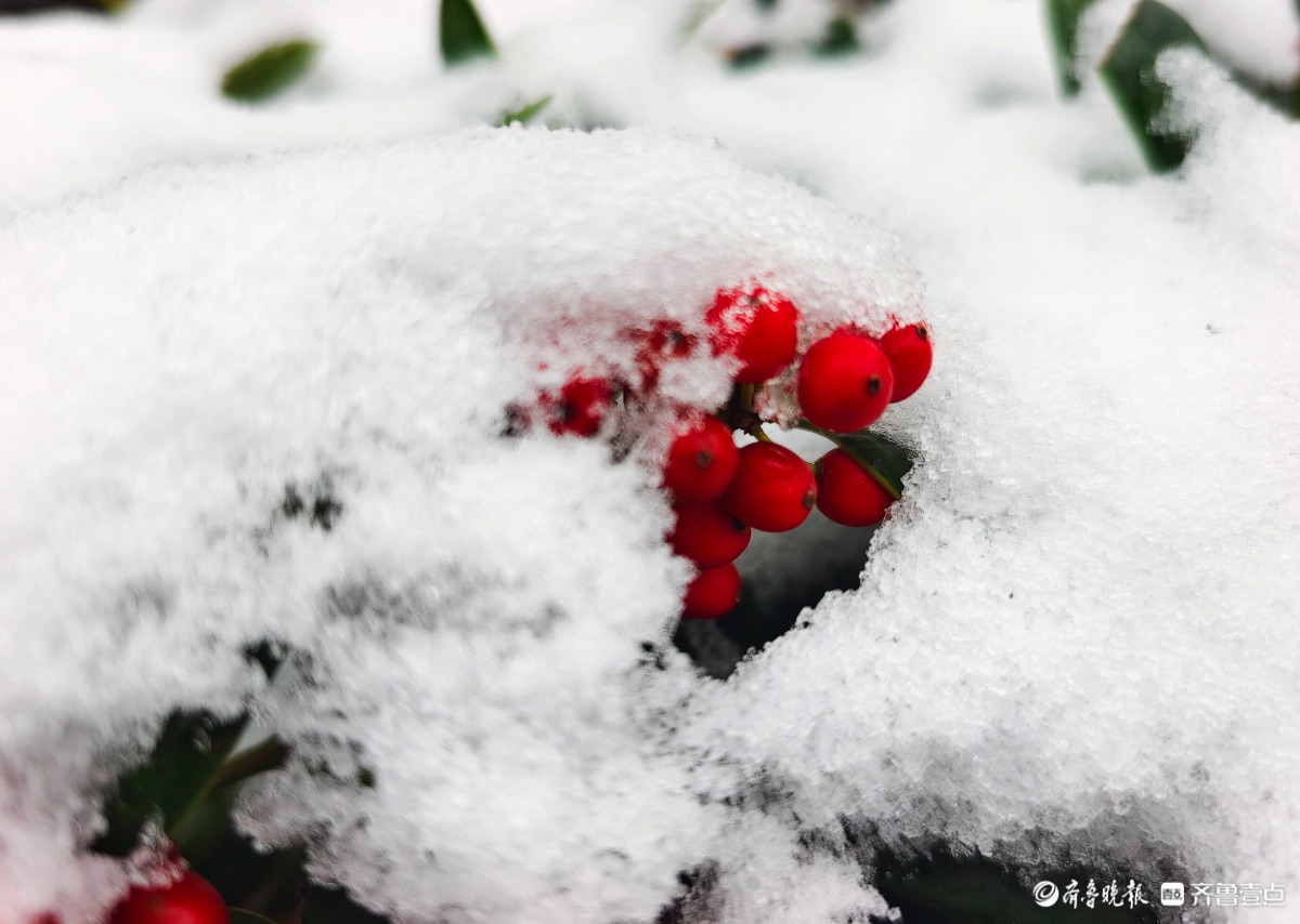 12月13日一场小雪覆盖了万物处处银装素裹小区绿化带里的冬青红果被白雪覆盖隐约露出鲜艳的红色别有意趣高军摄