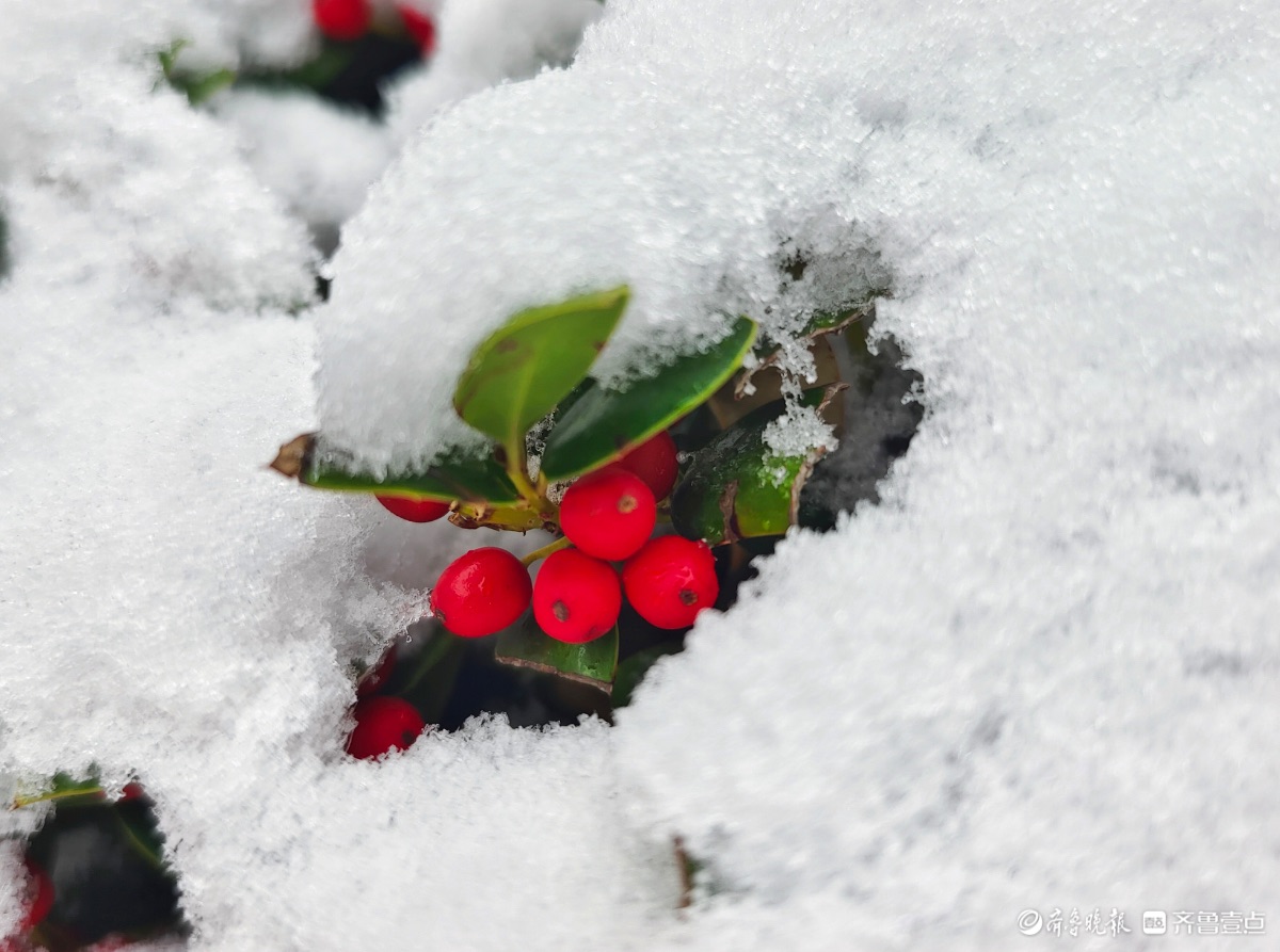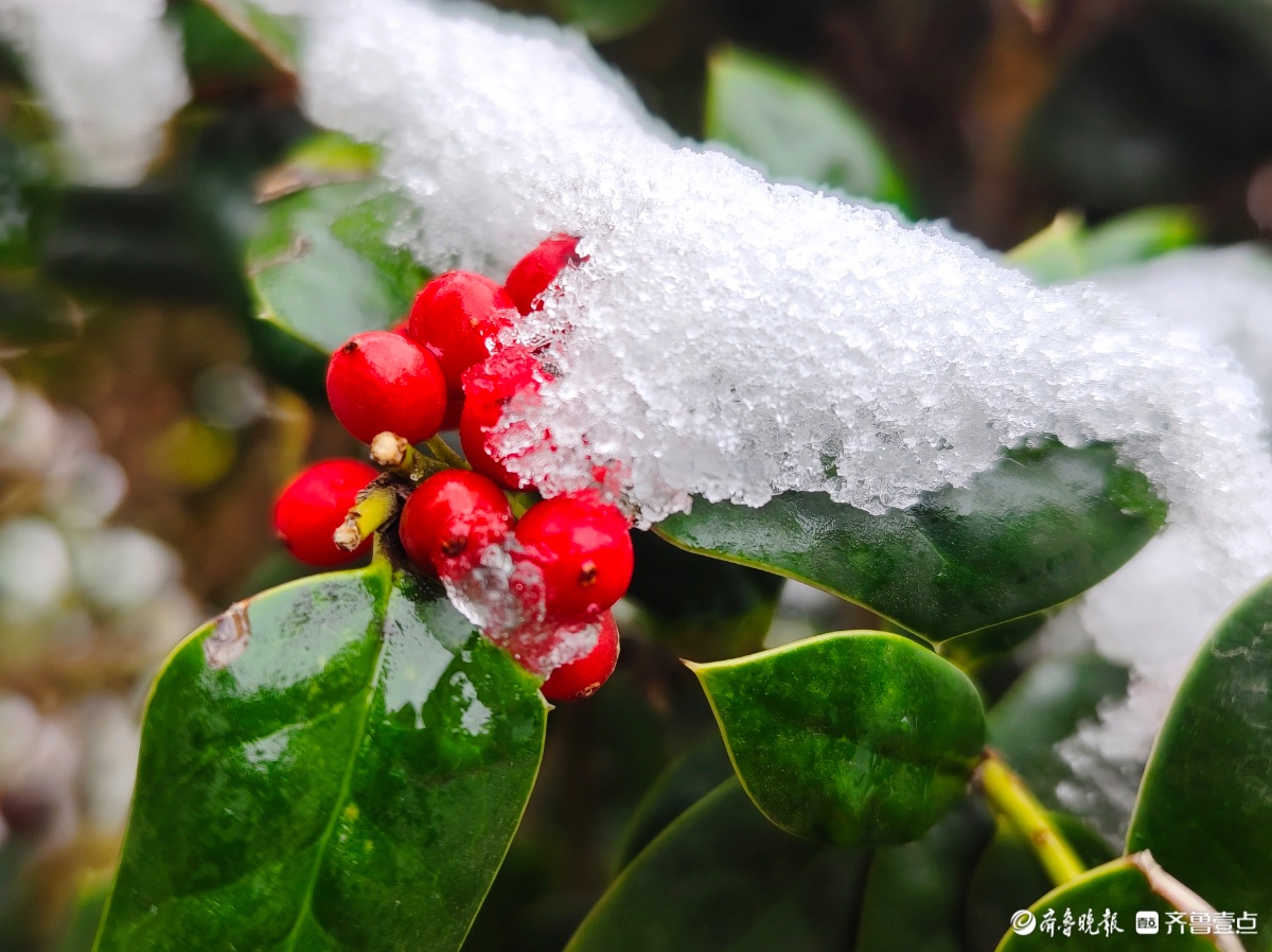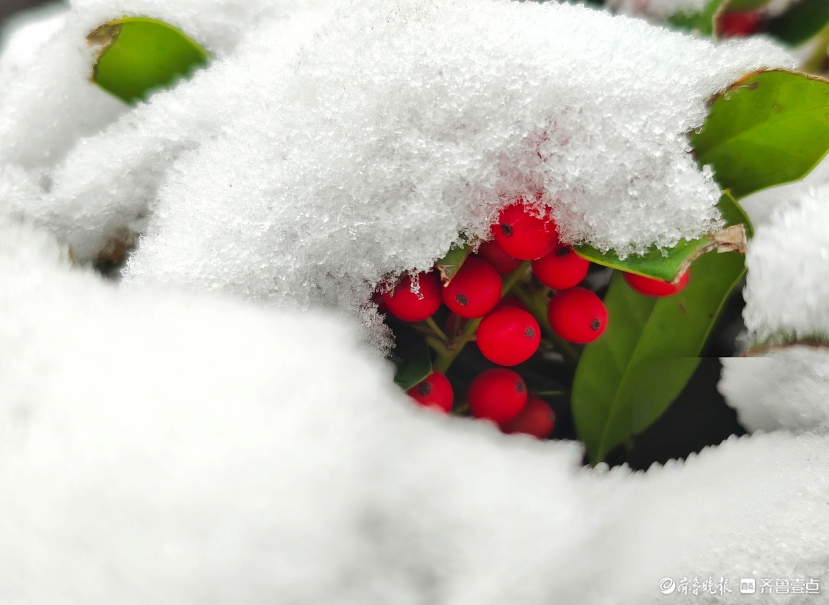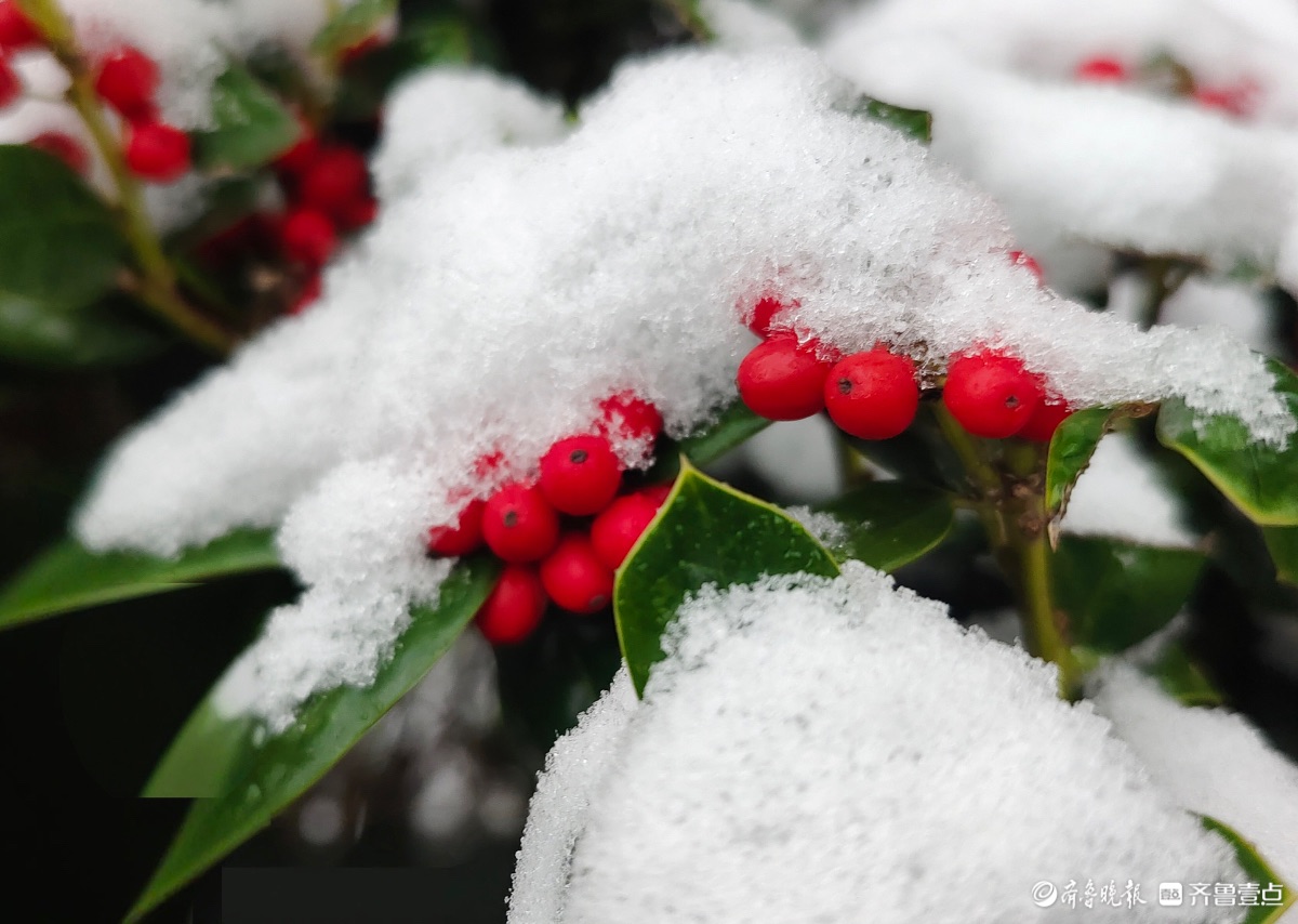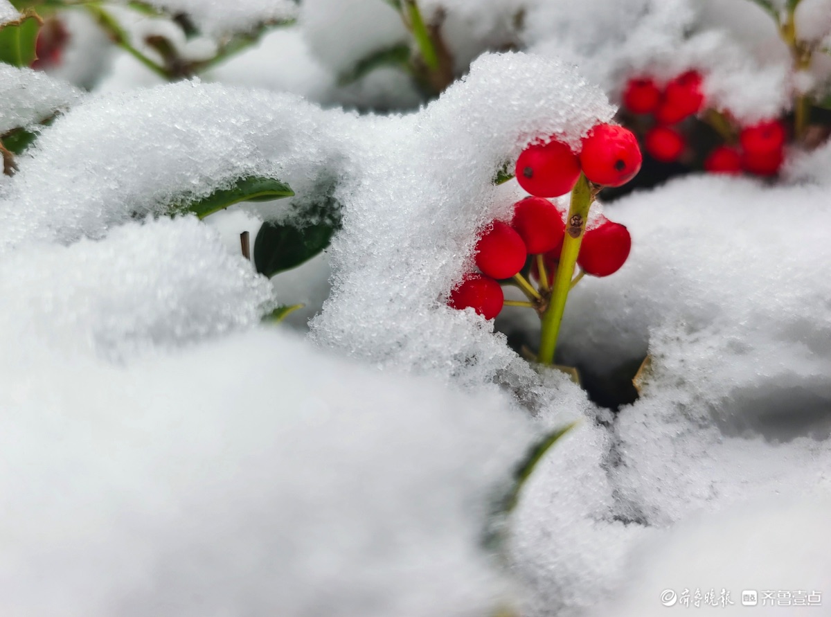 12月13日一场小雪覆盖了万物处处银装素裹小区绿化带里的冬青红果被白雪覆盖隐约露出鲜艳的红色别有意趣高军摄
