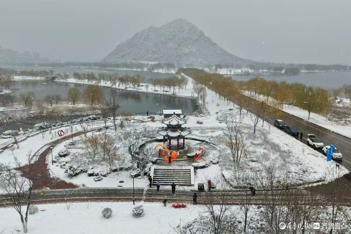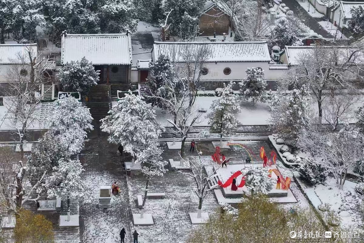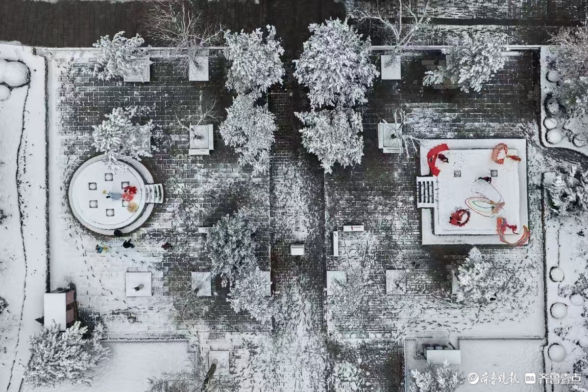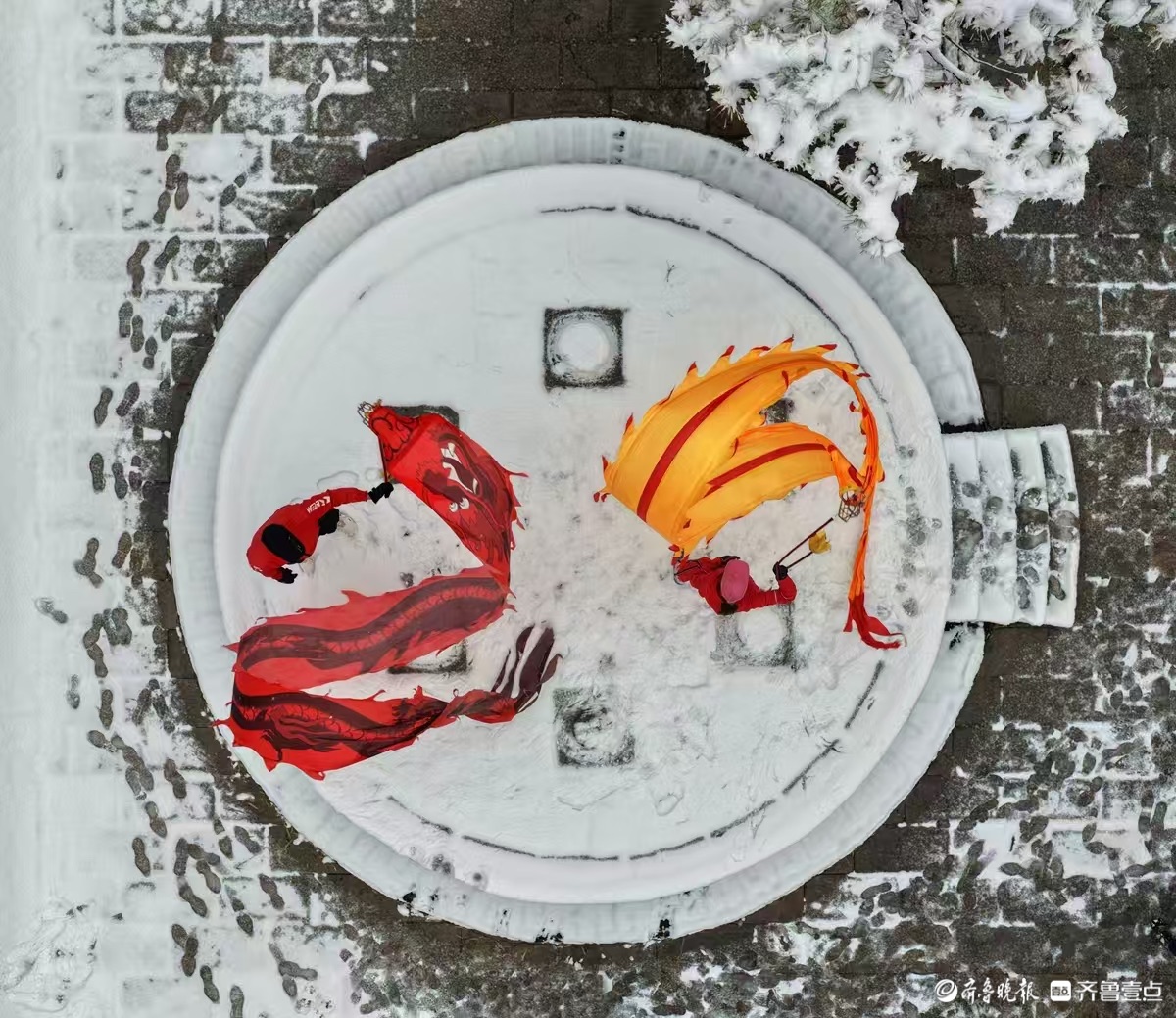 12月12日济南迎来了今冬第一场大雪华山景区一片银装素裹黛色山影在薄雾中朦胧枝头的雪絮簌簌勾勒出清冷的冬日画卷而这片素白里却燃着跃动的红健身龙爱好者们踏雪而来红金相间的龙绸在他们手中翻飞或绕成圆虹或甩作长练雪沫被龙绸带起的风卷动与飘带缠作一团舞者的身影在亭台石桥间辗转呵出的白气混着龙绸的红让清冷的华山雪景多了满溢的生机与人间暖意王平摄