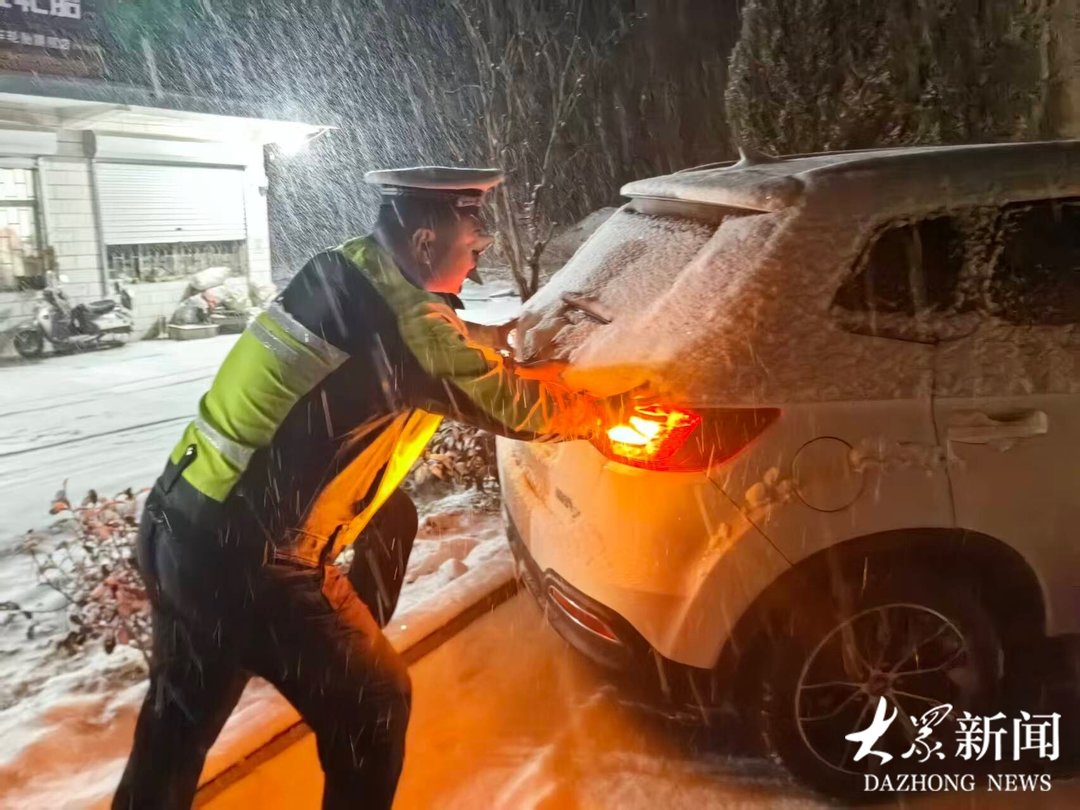 “交警叔叔辛苦了!你看那帽子上都打满雪了。”一位接孩子的家长感慨道。淄博交警的坚守,为市民出行筑起一道温暖坚实的安全屏障。