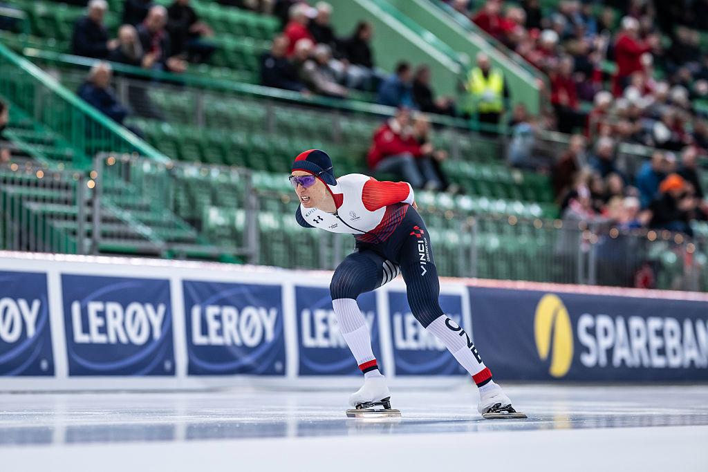 当日,伊莱克滑出了6分07秒58的优异成绩,以超过两秒的优势打破了由荷兰速滑名将斯文·克拉默保持了16年之久的赛道纪录。法国选手蒂莫西·卢比诺和东道主挪威选手桑德尔·艾特雷姆分获该项目的银牌和铜牌。在男子1000米角逐中,美国名将斯托尔兹延续前一天连夺两金的火热状态,以1分07秒63的成绩夺冠并刷新赛道纪录。中国选手廉子文和宁忠岩分获该项目的第14名和第19名。