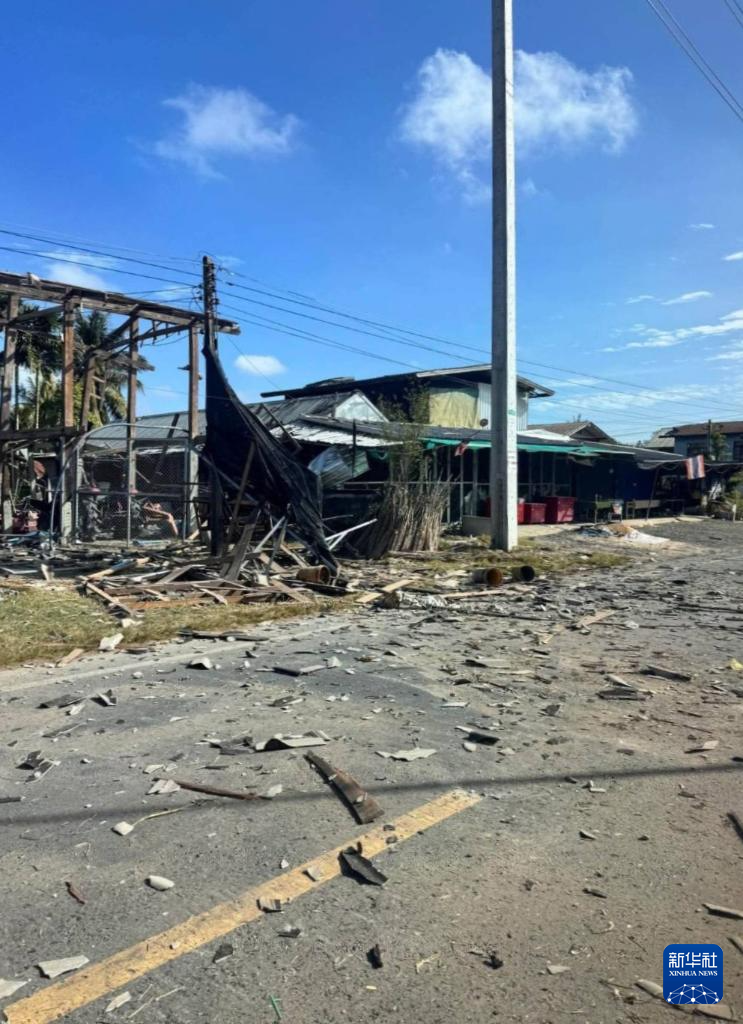 这张泰国军方提供的照片显示,12月13日,泰国四色菊府的一处民宅被火箭弹摧毁。