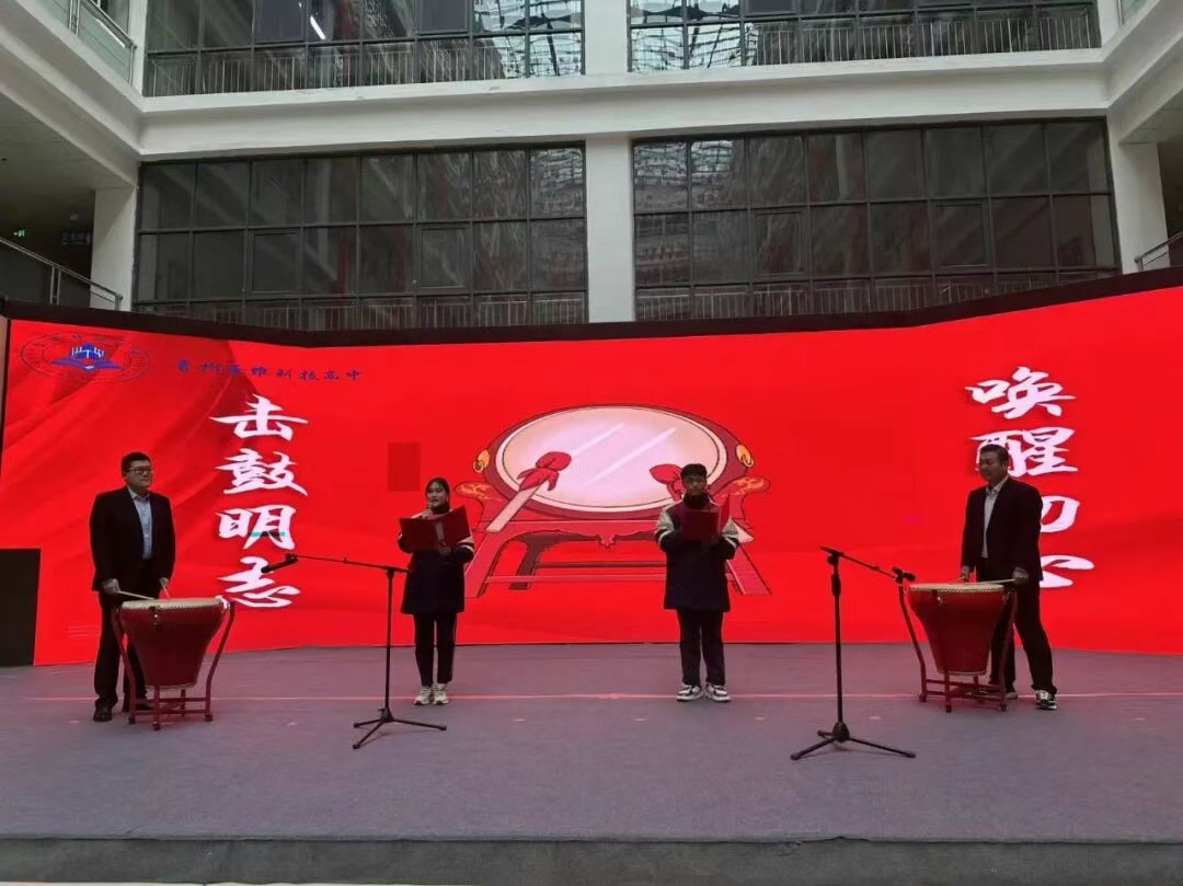 随着主持人宣布仪式开始,全体人员肃立奏唱国歌,雄壮的旋律在校园上空回荡,为这场成人礼奠定了庄严神圣的基调。随后的“击鼓明志”环节极具深意,两位受邀教师登台,击鼓十八响,每一声鼓点都铿锵有力,既象征着学子们十八载的岁月沉淀,更奏响了他们开启成人征程的激昂号角,唤醒了心中的责任与初心。