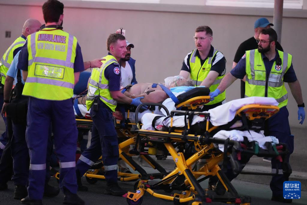 在澳大利亚悉尼枪击事件现场,应急人员运送伤员。