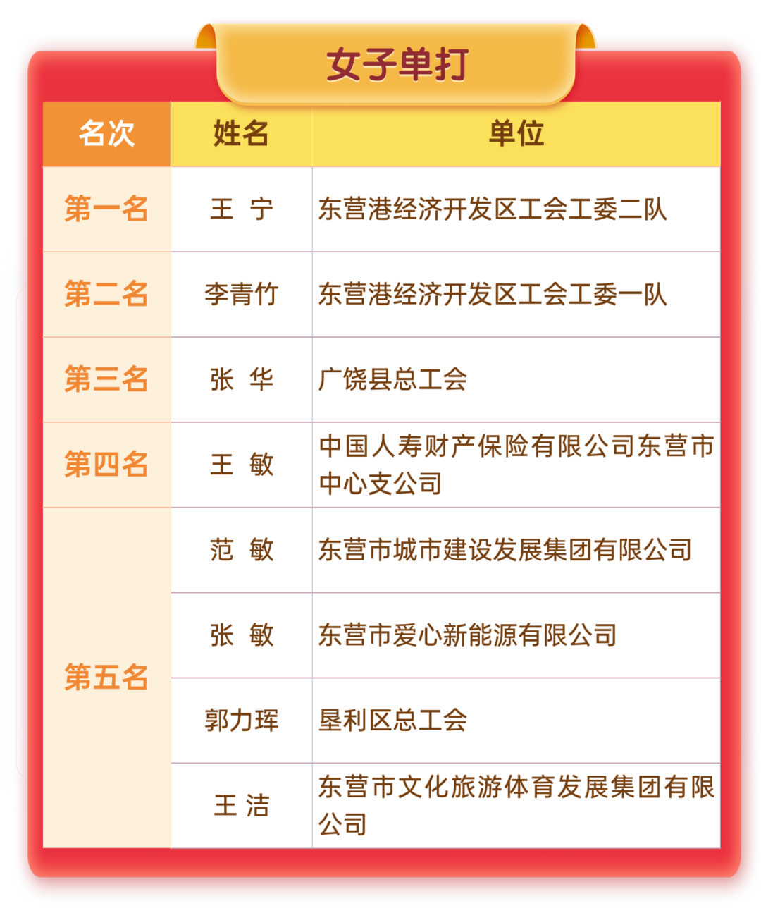 “活力无限 匹动精彩”东营市职工匹克球比赛落幕