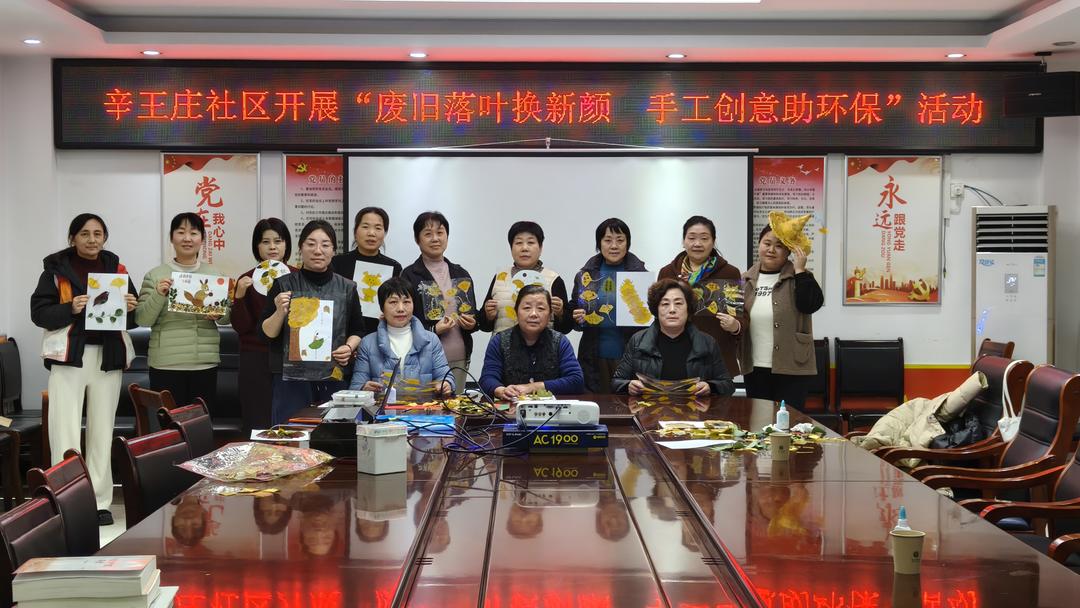中都街道辛王庄社区开展“废旧落叶换新颜”手工创意助环保活动