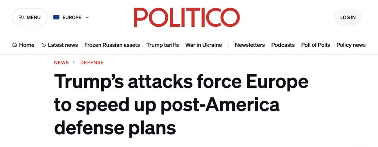 面对美国对欧洲的“嫌弃”和“抛弃”,欧洲各国不得不开始认真思考“后美国时代”的防务规划。近日,美国《政治报》欧洲版就发表了题为《特朗普的攻击迫使欧洲加快后美国时代防御计划》的报道。