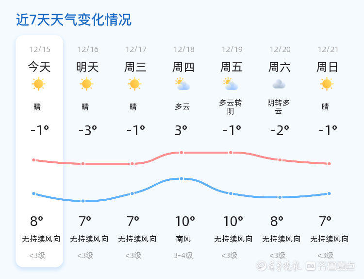 据气象部门预测,明天聊城仍将保持晴朗天气,但气温将有所下降,最低气温降至-3°C,最高气温为7°C。与今日相比,明天气温整体偏低,市民需提前做好防寒准备,尤其是早出晚归的朋友,建议增添衣物,谨防感冒。
