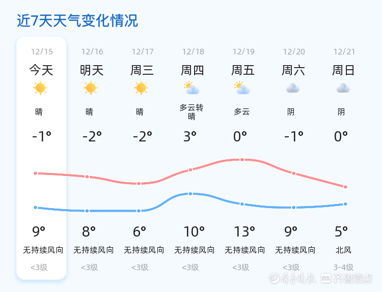 明天12月16日,潍坊市仍将保持晴朗天气,但气温有所下降,最低气温为-2℃,最高气温为8℃。与今天相比,气温略有下降,风力依然较小,无持续风向,小于3级。