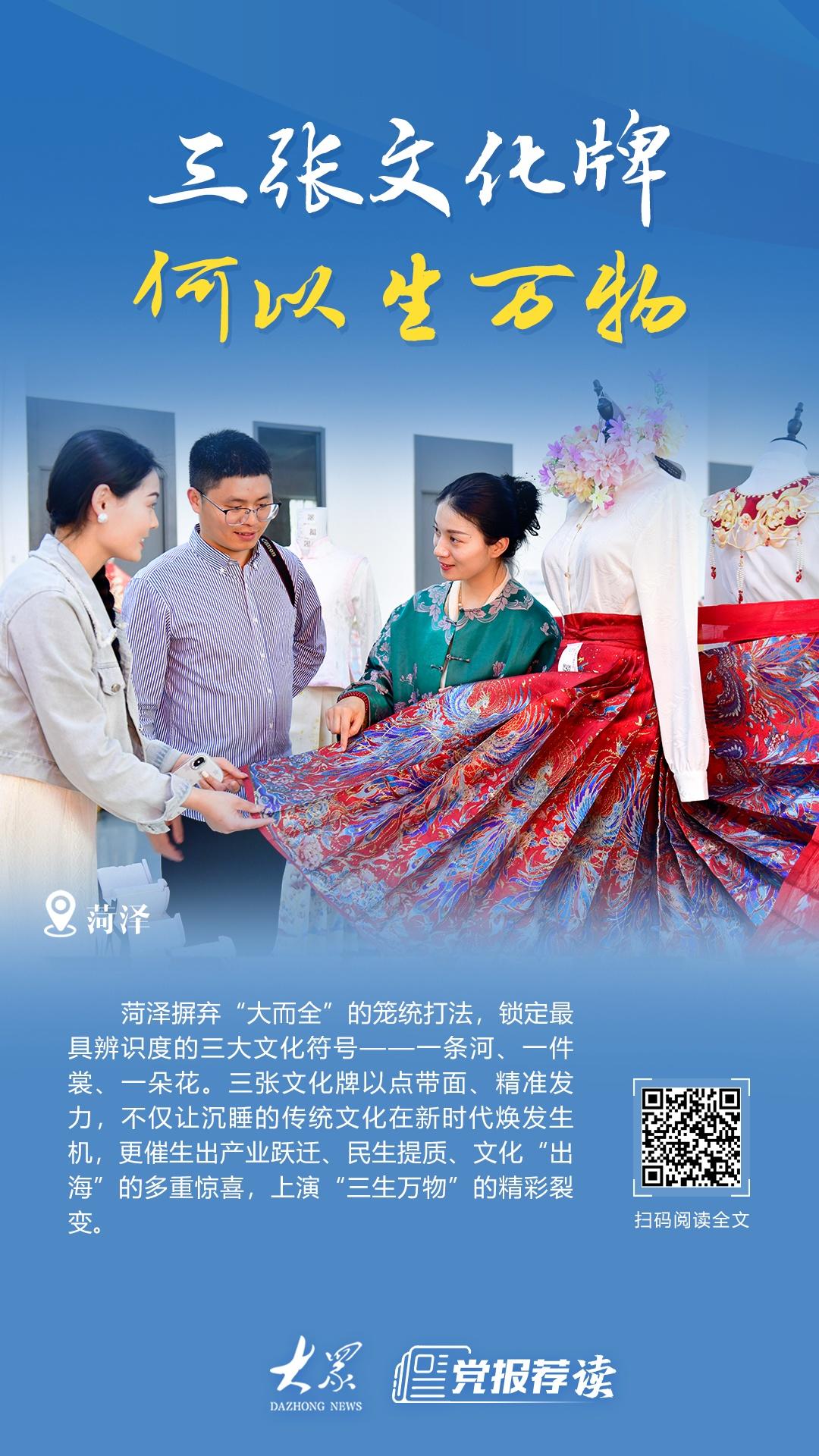 “一生二,二生三,三生万物。”在菏泽,“一条河、一件裳、一朵花”的“文化+”传奇,还在不断书写。