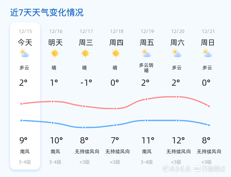 未来三天济南天气以晴到多云为主,最高气温10℃,最低气温-1℃。建议市民根据早晚温差及时增减衣物,尤其是老人和小孩要注意保暖。此外,晴朗天气适合出行,但风力较大,外出时请注意防范大风带来的影响。