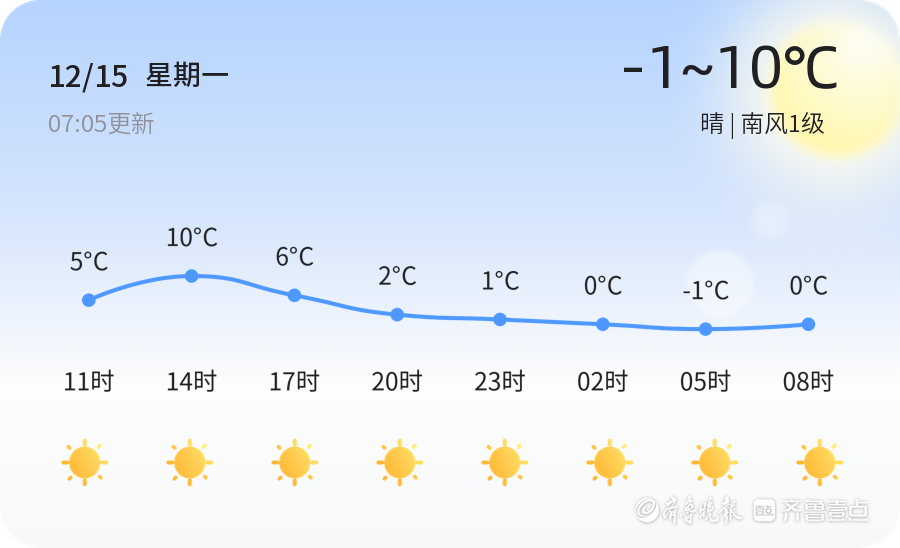 今天是12月15日,星期一,农历十月廿六。东营市今天天气晴朗,南风1级,气温在-1℃至10℃之间。早晨气温较低,建议市民出行时注意保暖,尤其是老年人和儿童。空气质量方面,PM2.5指数为78,属于良好水平,适合户外活动。市民可以放心进行日常出行和锻炼。