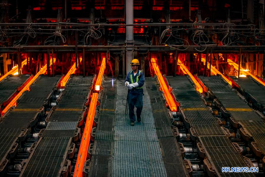 4월 3일 팡다(方大)그룹 주장핑강(九江萍鋼)철강회사 생산작업장. (사진/신화통신)