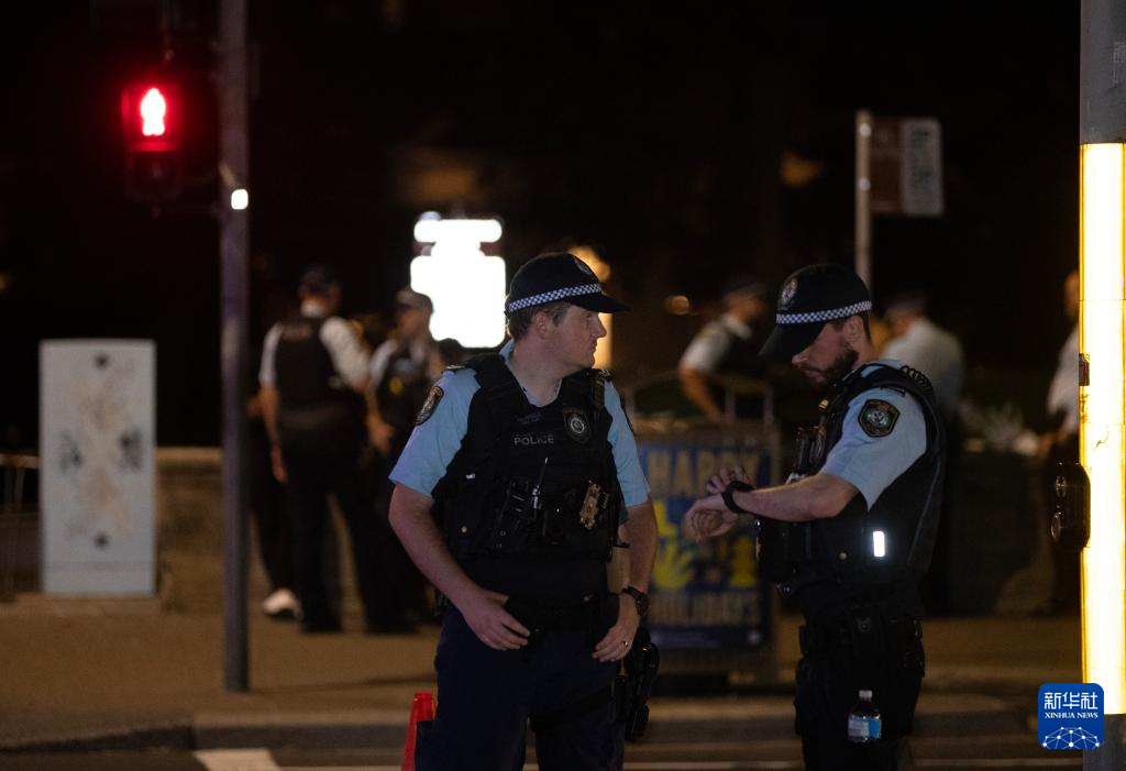 14日,警察在邦迪滩枪击事件附近区域执勤。