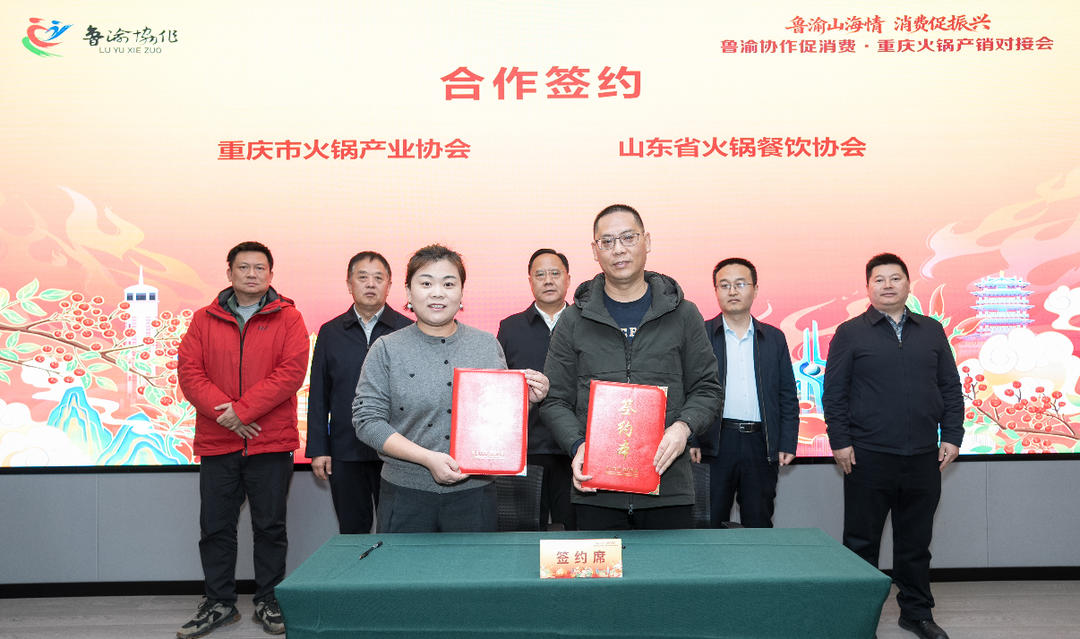 12月12日下午,“鲁渝协作促消费·重庆火锅产销对接会”在泉城济南成功举行。本次活动由重庆市农业农村委员会、山东省发展和改革委员会、山东省协作重庆干部管理组共同主办,以火锅为纽带,旨在推动鲁渝两地产业协同与消费互动,搭建精准产销对接平台,共同谱写东西部协作新篇章。对接会现场签约踊跃、交流热烈,为期三天的火锅文化节各项展示展销与体验活动也于同期拉开帷幕。
