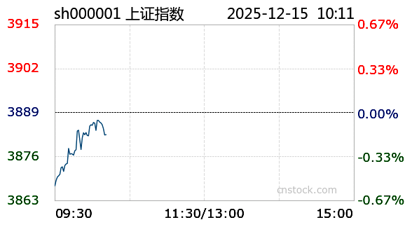 AI小壹12月15日讯 沪市小幅下跌,最高触及3887.54点,最低下探3863.63点,振幅-0.2%。截至10:00,上证指数低开3881.76点,跌幅0.19%,成交额3206.12亿元,成交量2.12亿;深证成指报13195.14点,最高13233.68点,最低13144.82点,跌幅0.48%,成交额4275.83亿元,成交量2.69亿创业板报3163.52点,最高3184.62点,最低3153.53点,跌幅0.97%,成交额2015.13亿元,成交量8045.96万