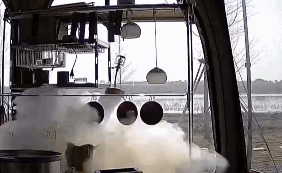 2024年2月,湖北武汉某露营基地一帐篷内,卡式炉气罐突然爆炸,爆炸瞬间产生的能量将帐篷内的物品炸飞,整个帐篷外壁都受到了强烈的冲击。