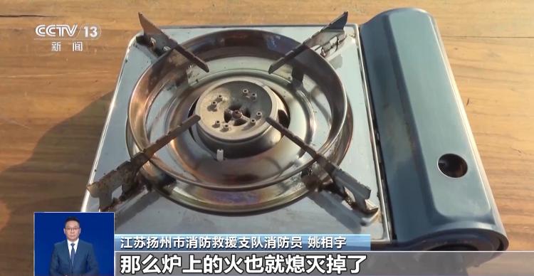 江苏扬州市消防救援支队消防员 姚相宇:如果气罐因为温度过高出现压力过大的情况,这个时候过压保护装置就会发挥作用,把丁烷气罐从炉体上给弹开,那么炉上的火也就熄灭掉了。