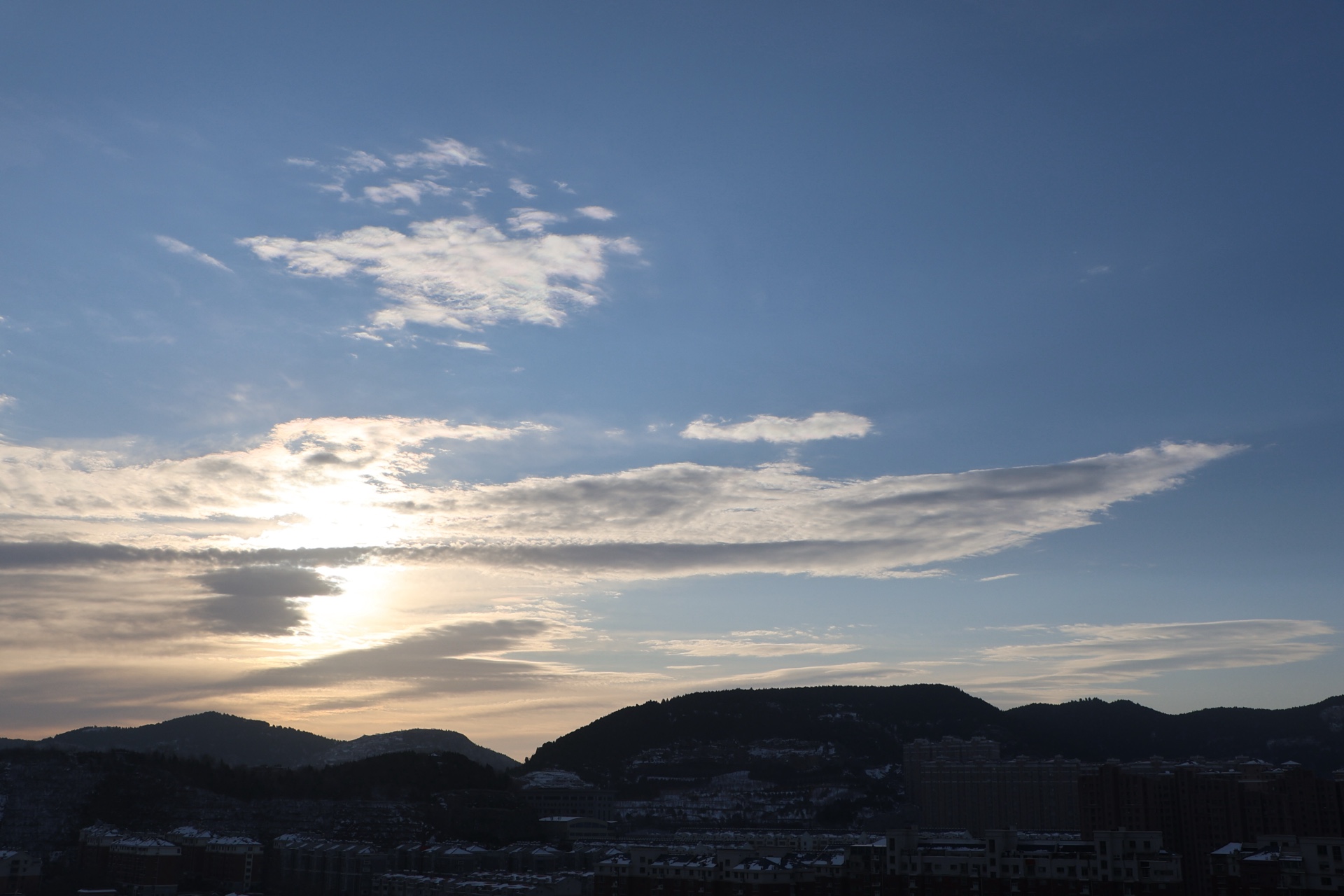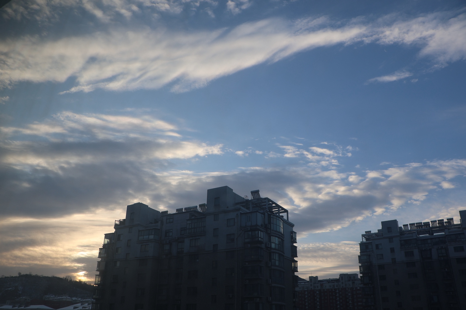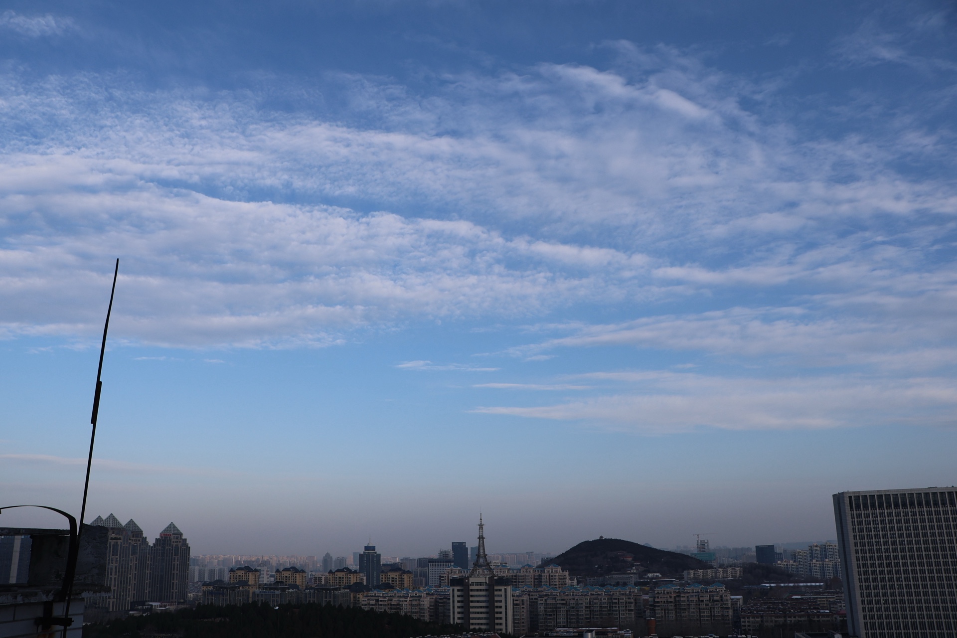 12月15日早晨济南东部天空乌云朵朵在朝阳照耀下与地上的林野高楼相照应犹如一幅幅精美的图画大众新闻记者武宗义