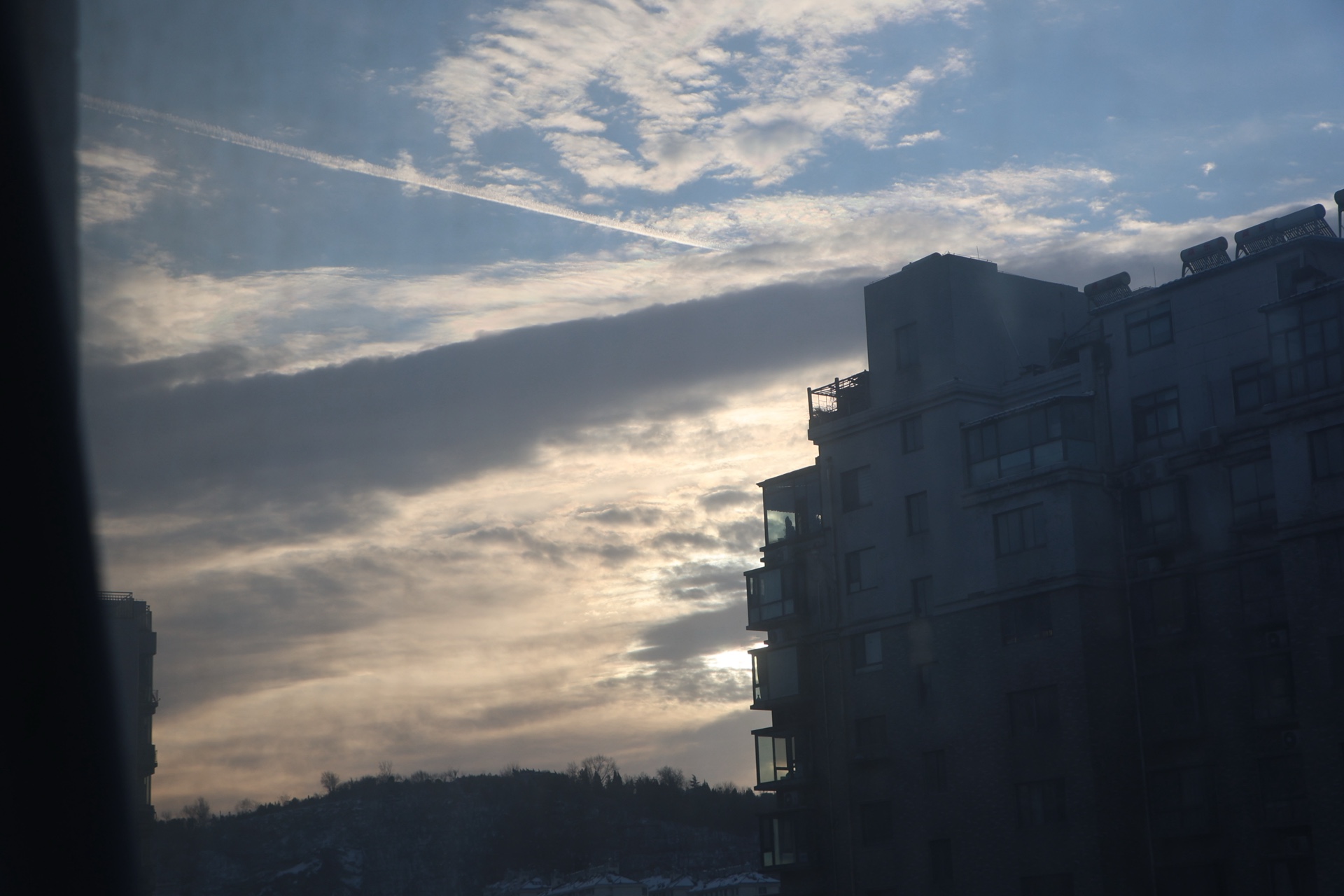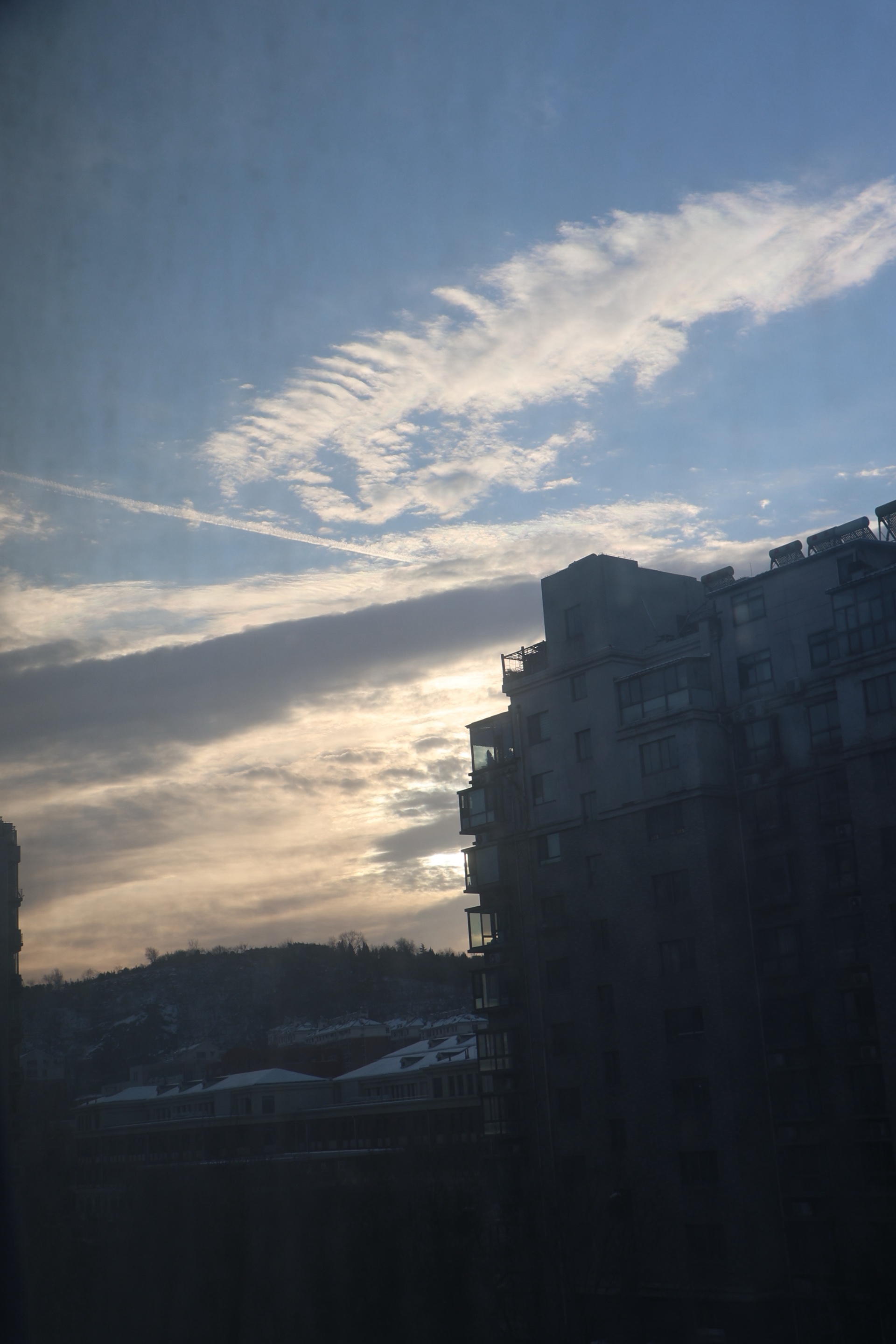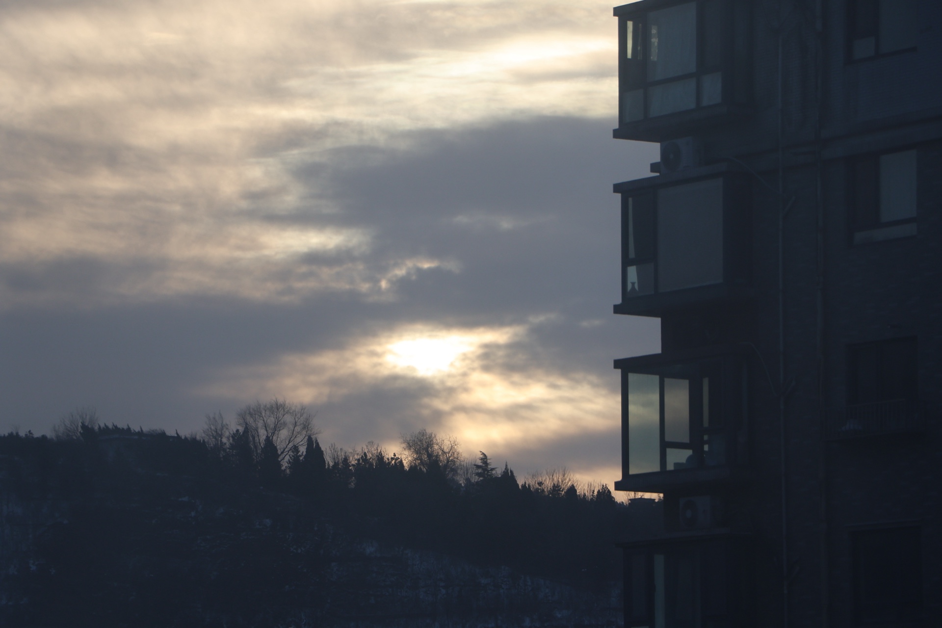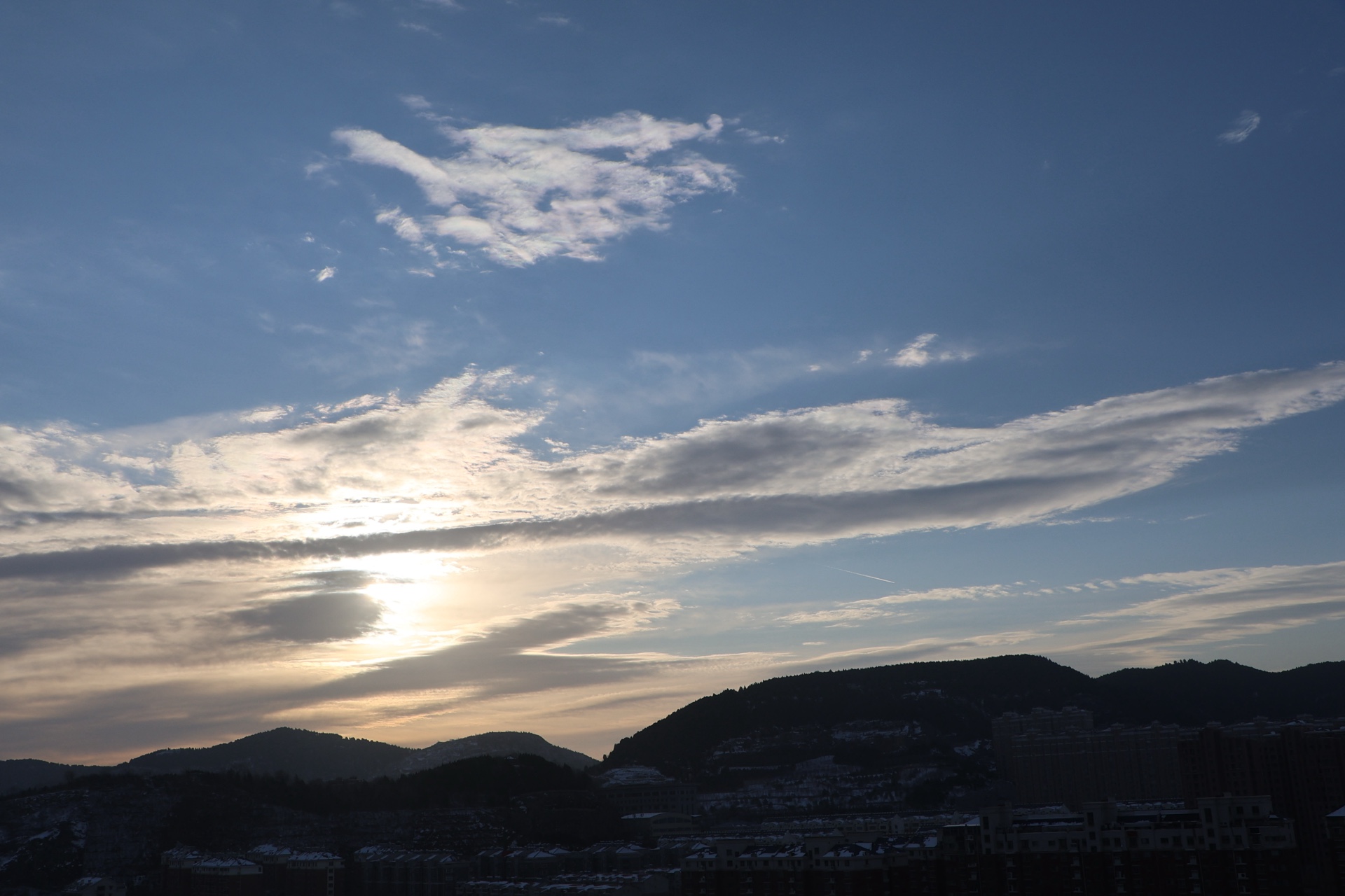 12月15日早晨济南东部天空乌云朵朵在朝阳照耀下与地上的林野高楼相照应犹如一幅幅精美的图画大众新闻记者武宗义
