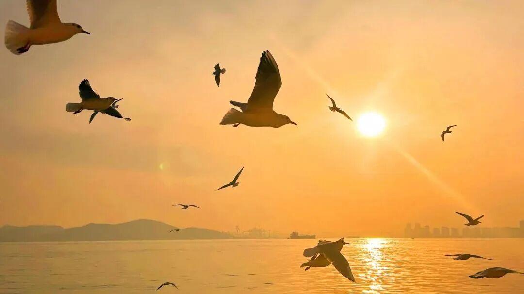 与盘旋飞舞的鸥群相映成趣