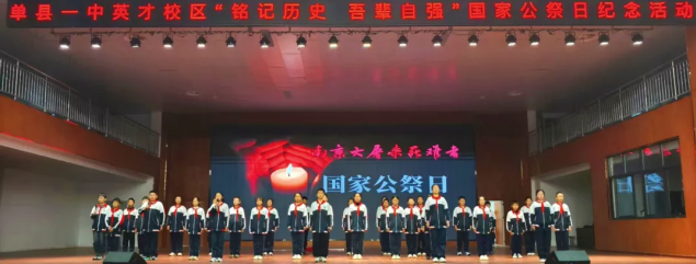 为深切缅怀南京大屠杀死难者及所有惨遭日本侵略者杀戮的同胞,引导学生铭记历史、珍爱和平、勇担使命,12月12日下午,单县一中英才校区初中部组织六、七年级全体学生,在南校区报告厅开展了以“铭记历史,吾辈自强” 为主题的国家公祭日纪念活动。