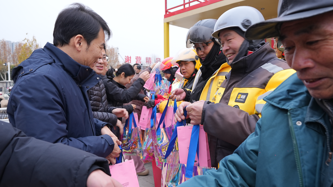 12月12日,济宁高新区洸河街道商务社区党委联合济宁龙贵购物广场,以及龙贵茉莉奶白品牌店,在商务社区党群服务中心开展“以心暖‘新’ 关爱同行”冬日送温暖活动,为初雪中坚守岗位的新就业群体和户外工作者送上冬日里的专属温暖。来自商务社区周边的常驻新就业群体共同参与此次暖“新”活动。