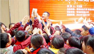 ▲于义睦到青岛南京路小学宣讲,引学生们“追星”。