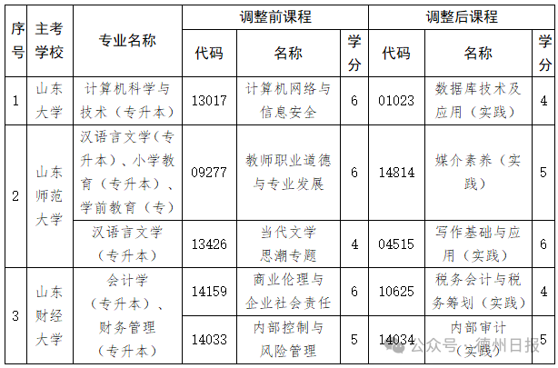 自2026年上半年起,汉语言文学(专升本)等6个专业部分课程调整,具体内容如下: