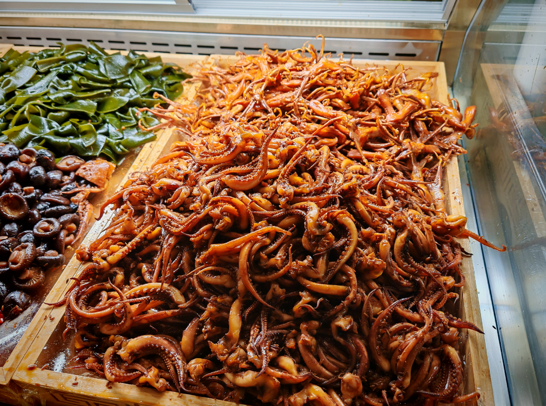 走进巴生港门店,“前店后厨、明档现卤”的运营模式让消费者眼前一亮。透明的操作间内,卤制师傅的每一个步骤都清晰可见,“现场制作看得见,吃起来特别放心”成为Instagram上高频出现的评价。产品陈列架上,既有卤鸭脖、卤鸭锁骨等承载着品牌基因的经典款,也有贴合马来西亚消费者口味偏好的创新品类——鲜嫩的章鱼仔、Q弹的鱿鱼须、肥美的扇贝等小海鲜卤味,搭配新增的海带结等素菜系列,与门店主推的 “整腿多汁、个大肉厚” 的卤鸭腿一起,构成了丰富多元的产品矩阵。