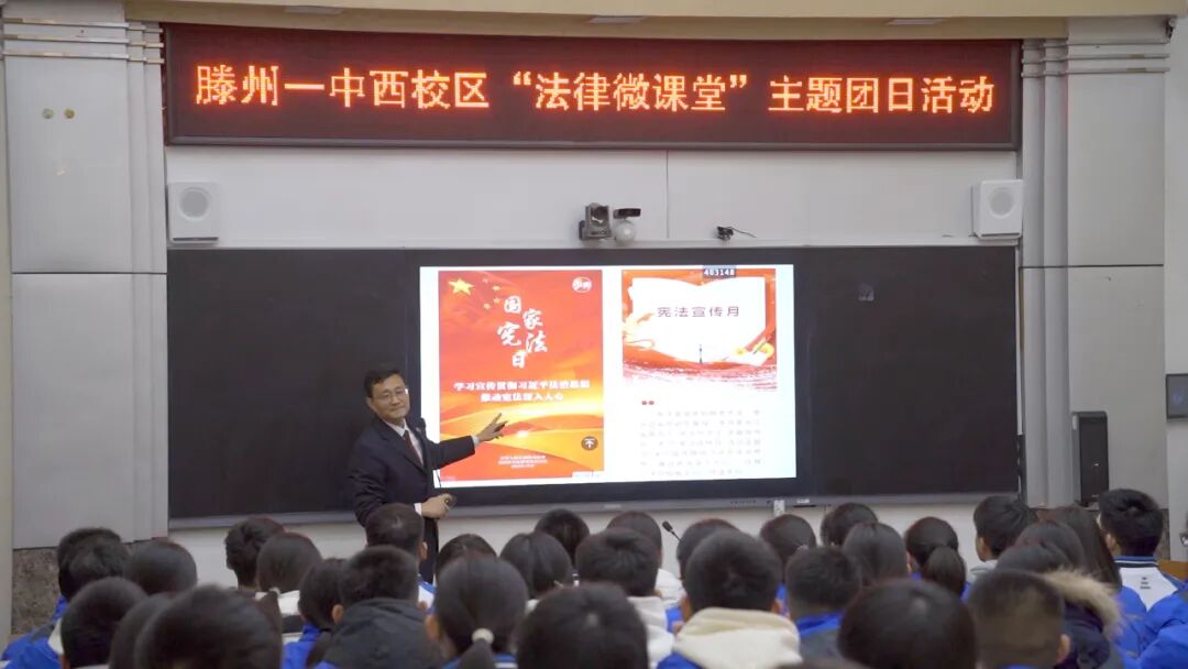 为深入弘扬宪法精神、筑牢未成年人法治信仰根基,12月14日,滕州市人民检察院四级高级检察官马兆坡走进滕州一中西校区,为高一200余名学生带来了一场主题为“智启未来,法护成长”的法治讲座,将宪法知识融入青少年日常学习生活,进一步强化终身法治教育理念,为同学们健康成长筑牢法治根基。