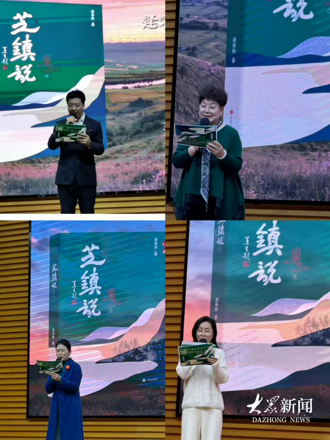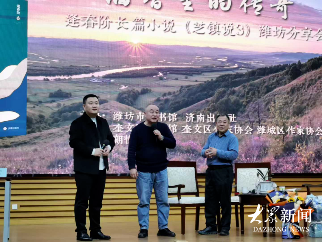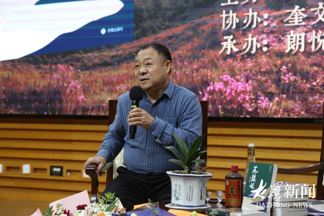 活动现场,作家逄春阶介绍了其长篇小说《芝镇说》三部曲的创作背景。该系列以家乡景芝为背景,展现了中国近百年来的时代变迁和人物命运。