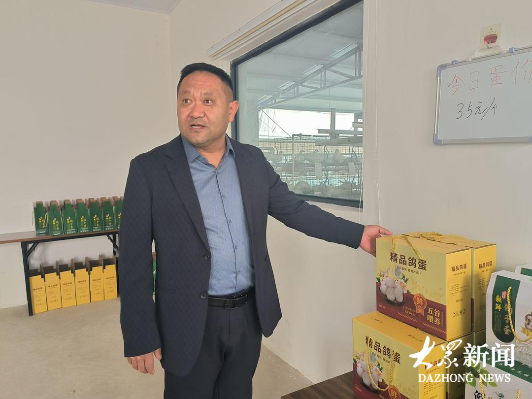 小李马庄村党支部书记李永涛介绍村中鸽子养殖情况。