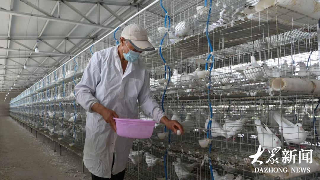 “菲耀科技”投资建设的鸽业养殖基地,年可存栏鸽子30万只,年可出栏肉鸽400万只,年产鸽蛋800万枚,产值达2.1亿元。基地采取“企业投入、基地孵化、村庄示范、群众代养、托底回购”的运作模式,形成了完整的产业闭环:企业负责市场销售和技术研发,基地提供种苗繁育和示范养殖,村集体合作社组织农户生产并盘活闲置资源。目前项目已辐射周边21个村庄、1100多户农民,带动集体增收400余万元,户均增收3.2万元,其中5个村正在打造鸽子养殖专业村。