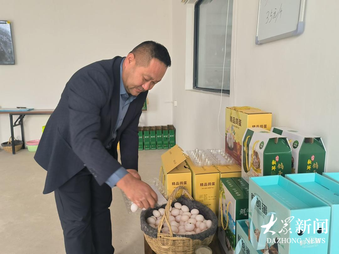 小李马庄村党支部书记李永涛把鸽蛋装盒。
