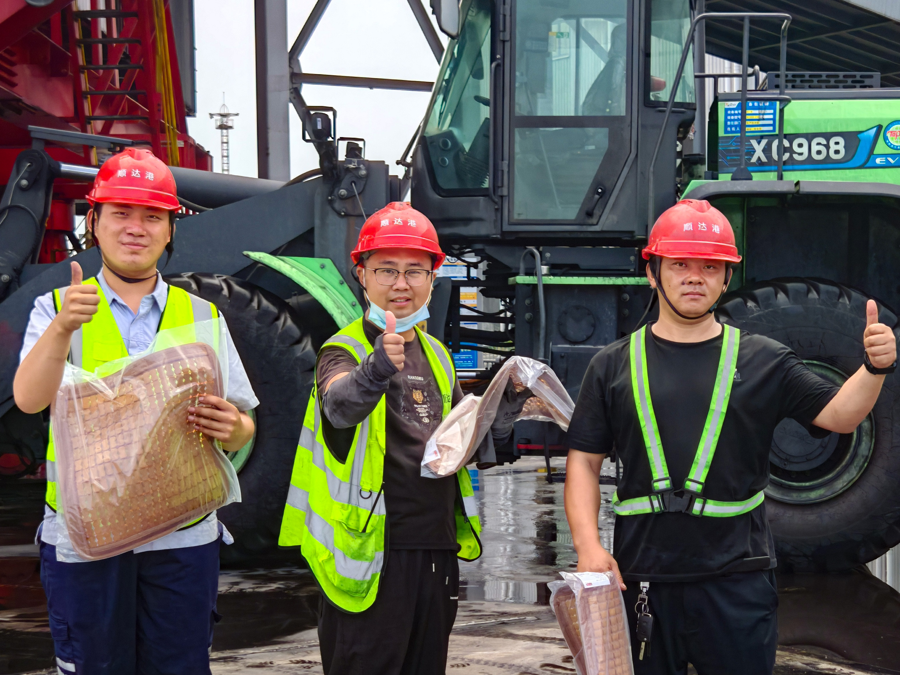 顺达港积极构建服务型党组织,这是支部党员为一线职工送流机设备坐垫