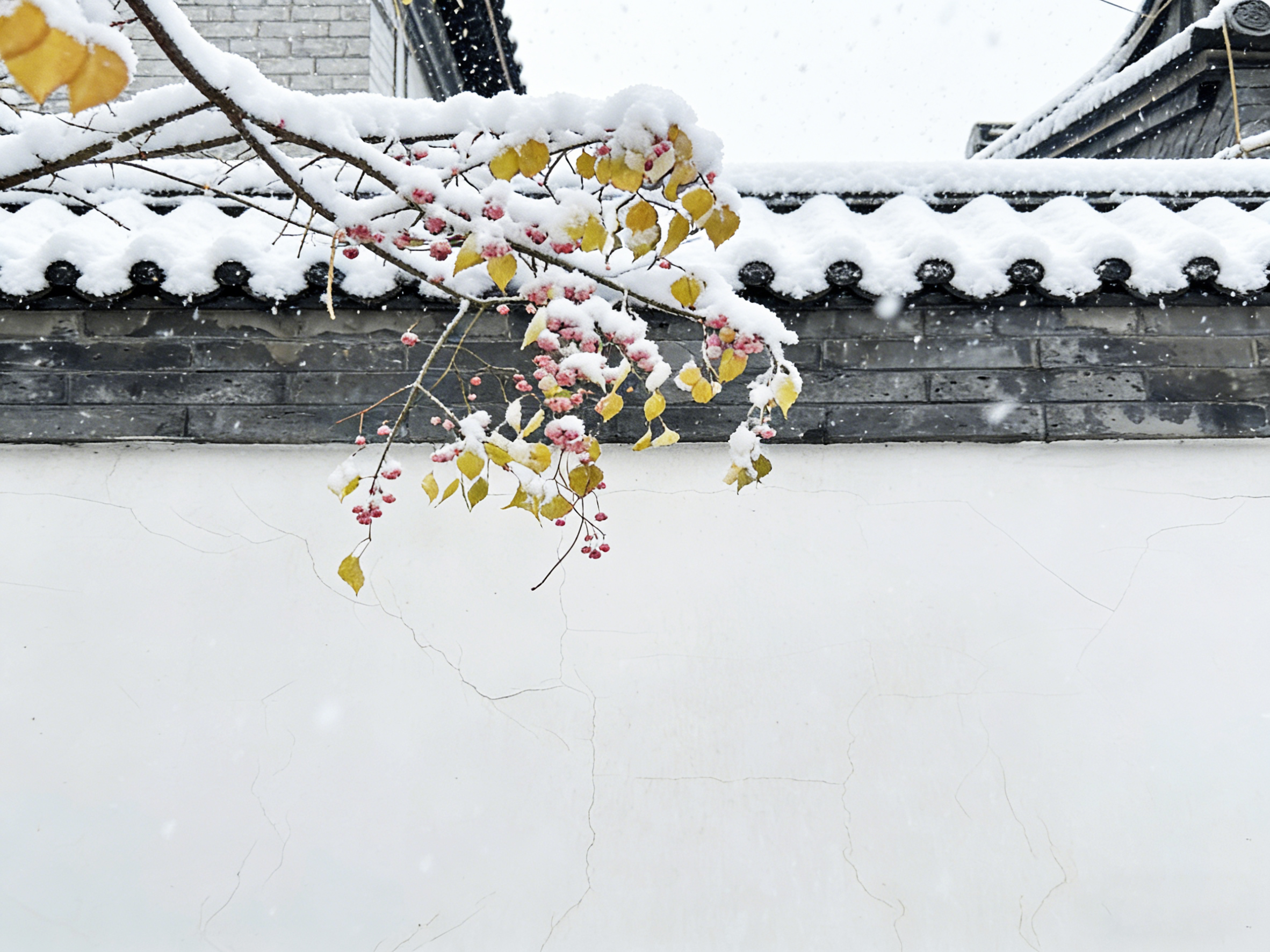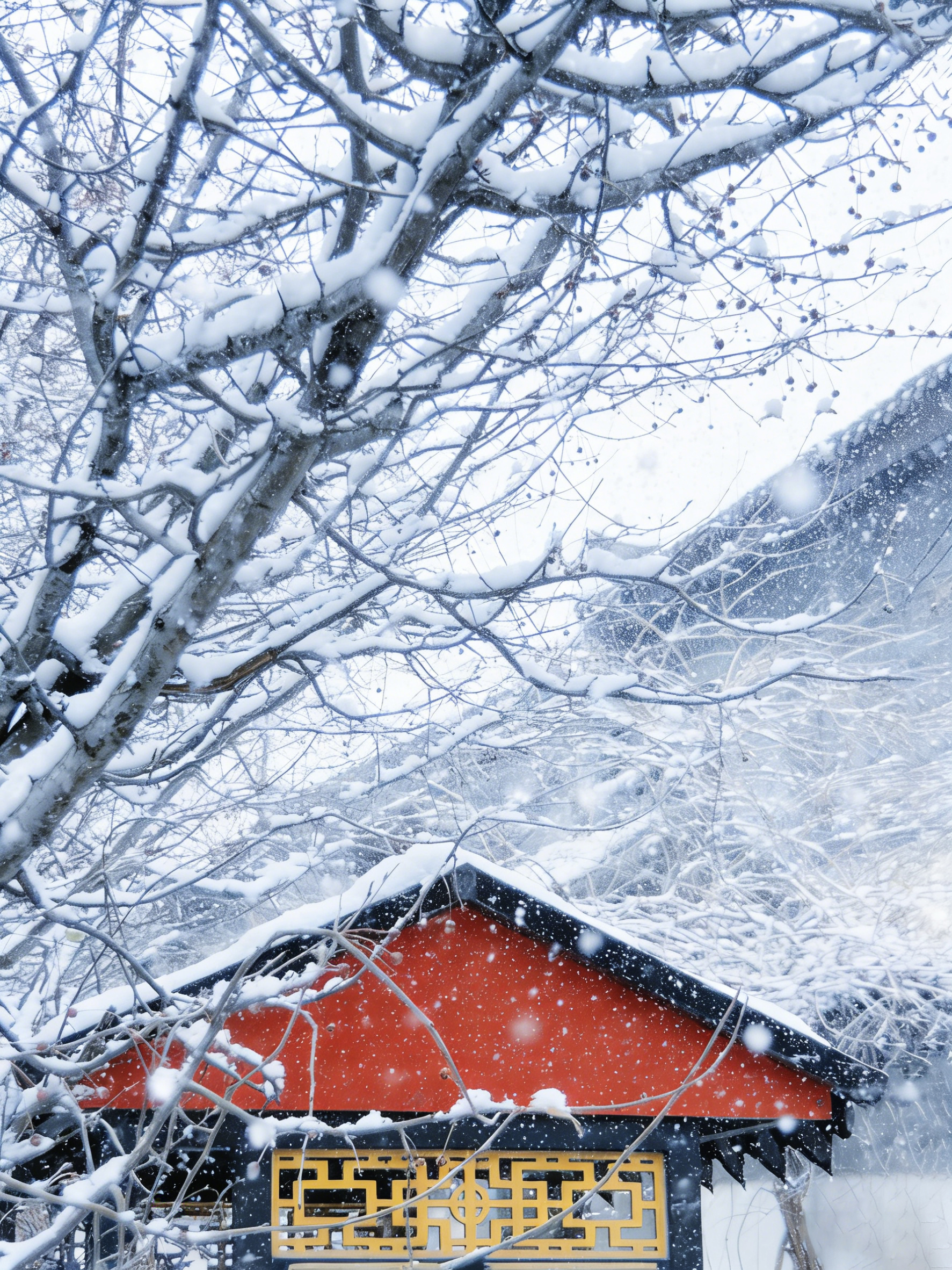 雪覆枝头即墨古城的屋檐下红与白交织成最美的风景古建筑的轮廓在雪中若隐若现仿佛穿越时空诉说着千年的故事青岛市即墨区孙友军拍摄