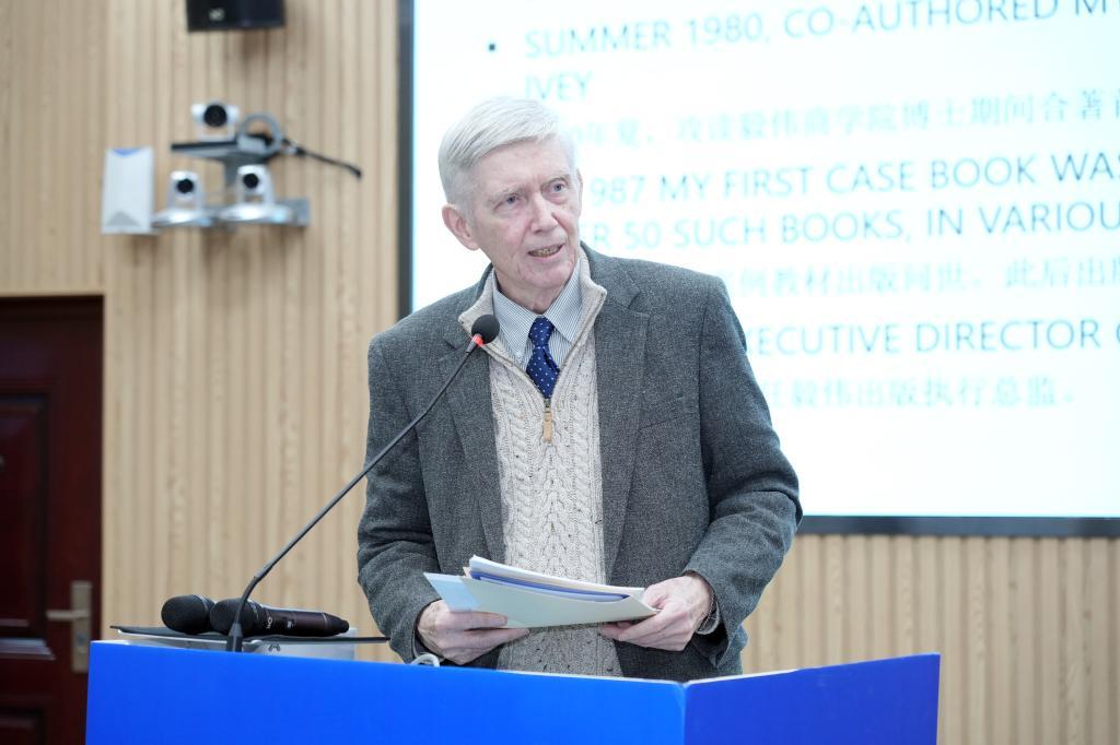 主旨报告环节,Paul W.Beamish以‘Let a 100 Cases Bloom: Ideas for the Next Case You Write’为题分析了全球案例教学与开发的增长趋势、非洲在全球经济结构中的重要意义以及中国对非投资的现实背景。他表示,开发中非合作案例具有巨大潜力,呼吁撰写能够填补国家、行业和现象空白的案例,丰富国际商务与工商管理课程教学,切实“让中非合作案例百花齐放”。伍建国、成晓毅、张龙飞分别围绕山东对非经贸合作政策、山东高速在非业务布局与实践、曹县汉服特色产业振兴等主题,展现了中非在经贸合作、国际投资、特色产业等方面的丰富经验与实践成果,为国际案例开发提供了鲜活素材与深刻启示。