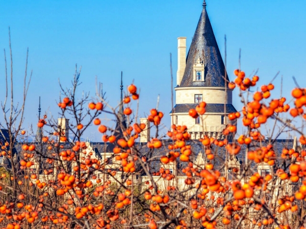 At Chateau Changyu-Castel, a lane lined with persimmon trees is now adorned with hanging fruits that drape softly from branches, casting gentle shadows in the slanting sun.