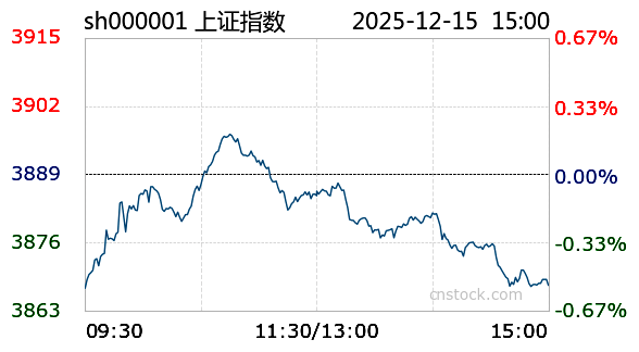 AI小壹12月15日讯 沪市小幅下跌,最高触及3896.98点,最低下探3863.63点,振幅-0.55%。截至今日15:00收盘,上证指数报3867.92点,跌幅0.55%,成交额7646.05亿元,成交量5.01亿;深证成指报13112.09点,最高13244.03点,最低13111.38点,跌幅1.1%,成交额1.01千亿元,成交量6.27亿;创业板报3137.8点,最高3184.62点,最低3135.66点,跌幅1.77%,成交额4720.79亿元,成交量1.88亿。
