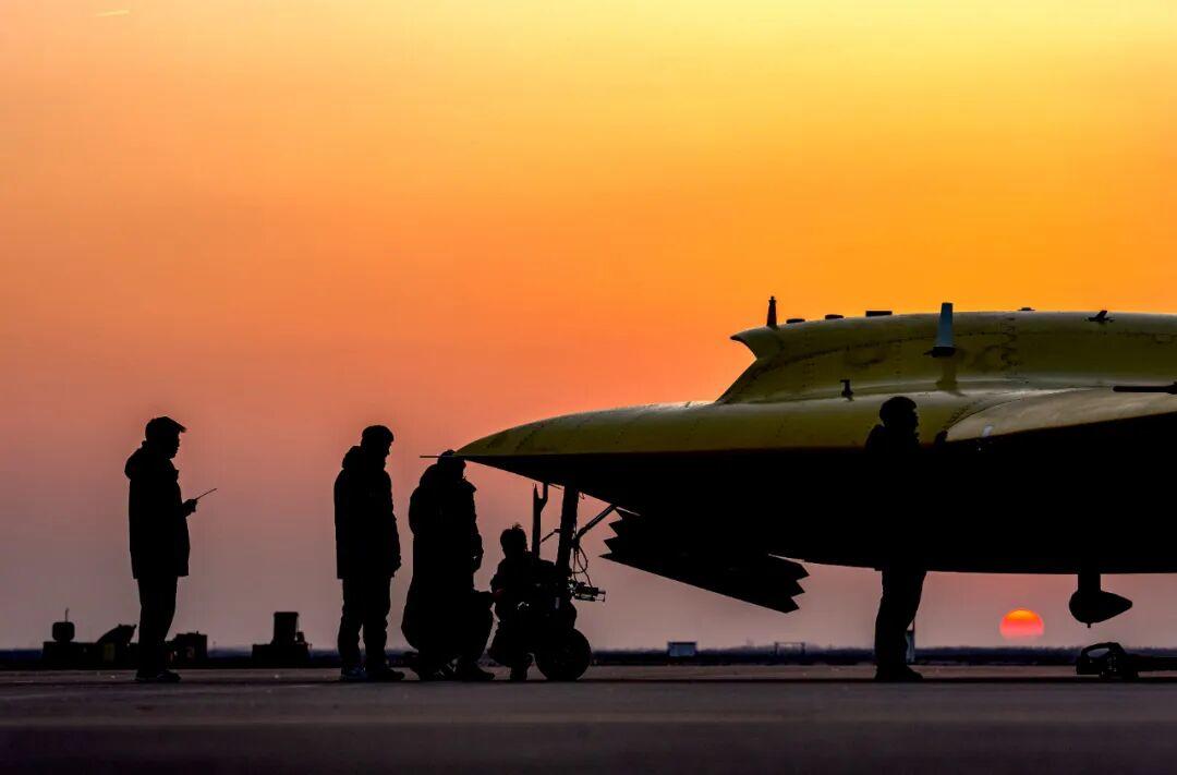 ▲被牵引至指定位置的彩虹-7无人机,其独特的大展弦比飞翼式布局在熹微晨光中显现出流畅而充满未来感的轮廓。